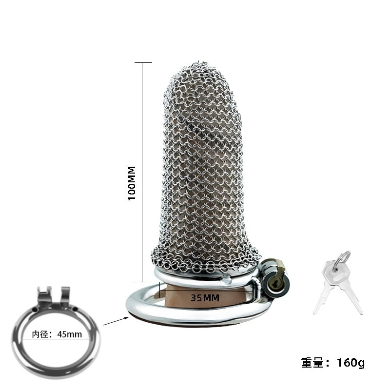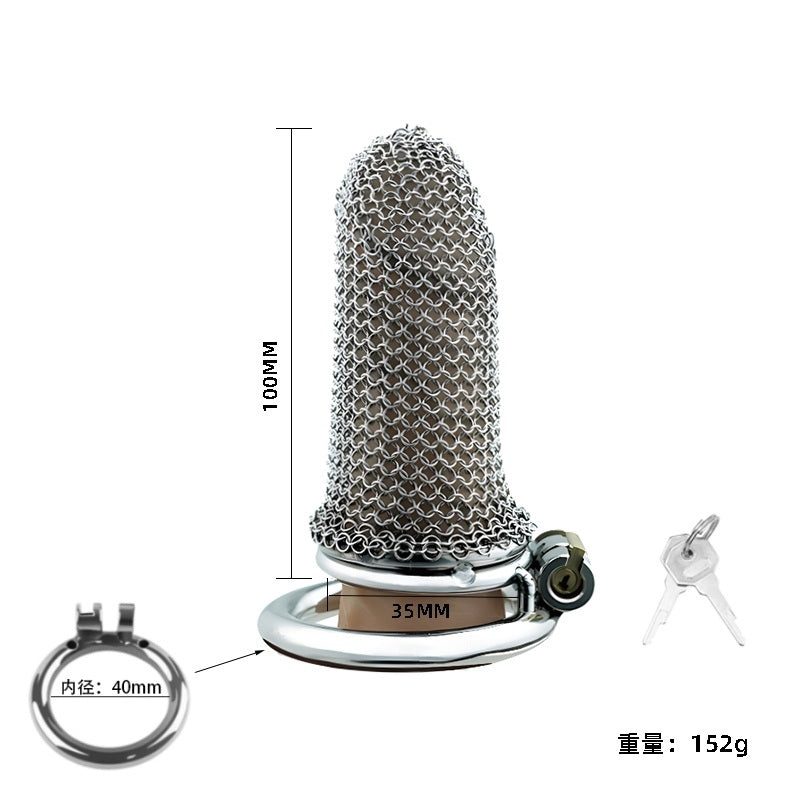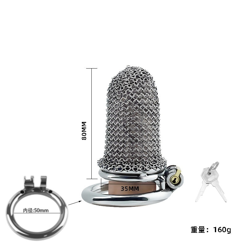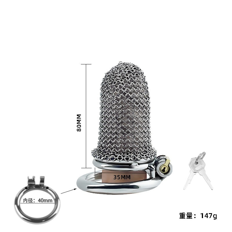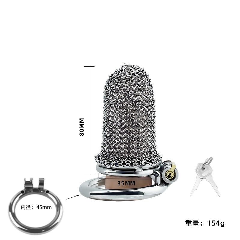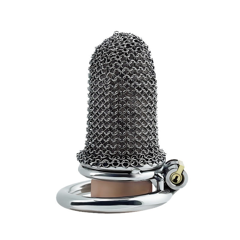 Una fusión de fantasía y fetiche: esta jaula de castidad estilo cota de malla es ligera, transpirable y diseñada para quienes buscan estética y autoridad. Diseño ajustable para una seguridad continua con un irresistible toque medieval.