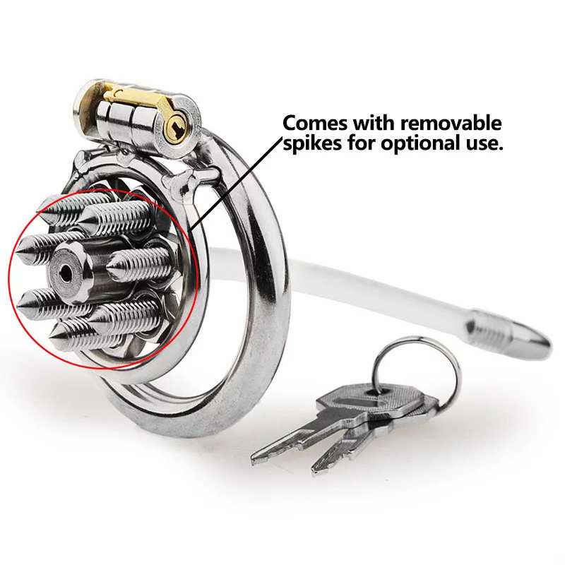 CATÉTER DE METAL CON PINCHOS PARA JAULA DE CASTIDAD PLANA