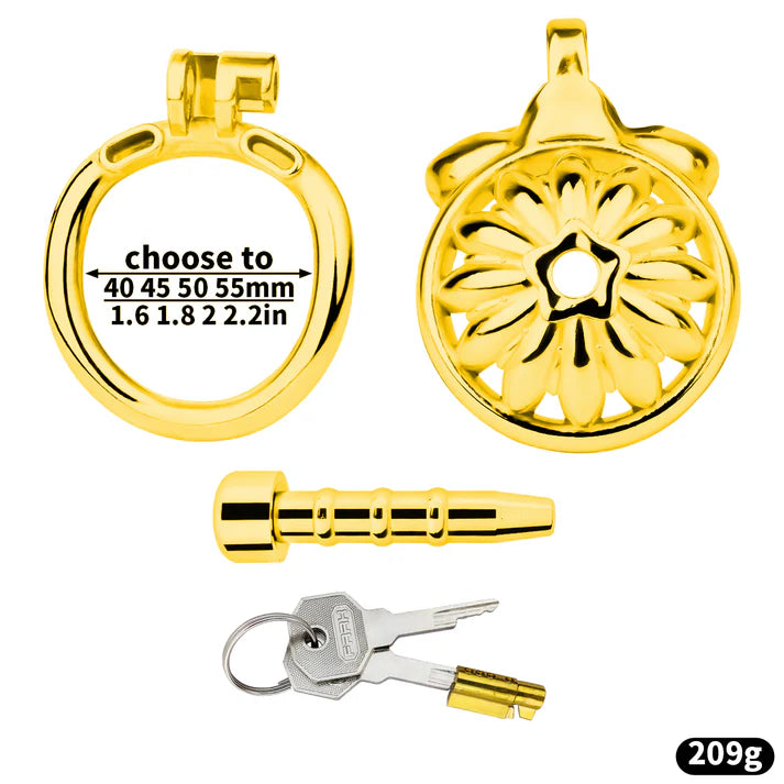 Inspired by the blooming sunflower, this artistic chastity cage embodies sunlight, brightness, and romance. Once worn, your cock transforms into a delicate, blossoming flower, awaiting the touch of its master or mistress.