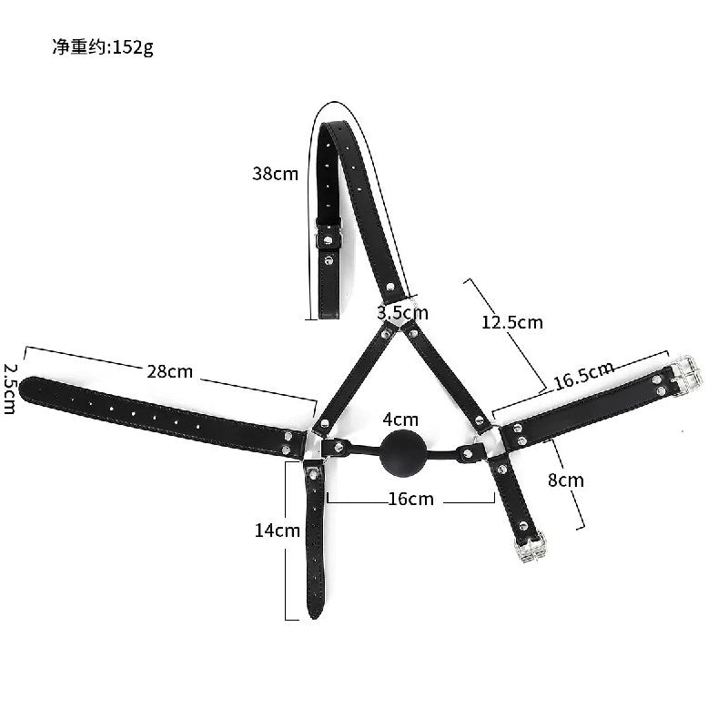 Elevate your partner’s sense of submission with this mouth gag head harness featuring a built-in ball gag. The adjustable PU leather straps wrap securely around the head, slightly limiting vision while keeping the large silicone ball gag firmly in place to silence every moan and deepen the restraint experience.