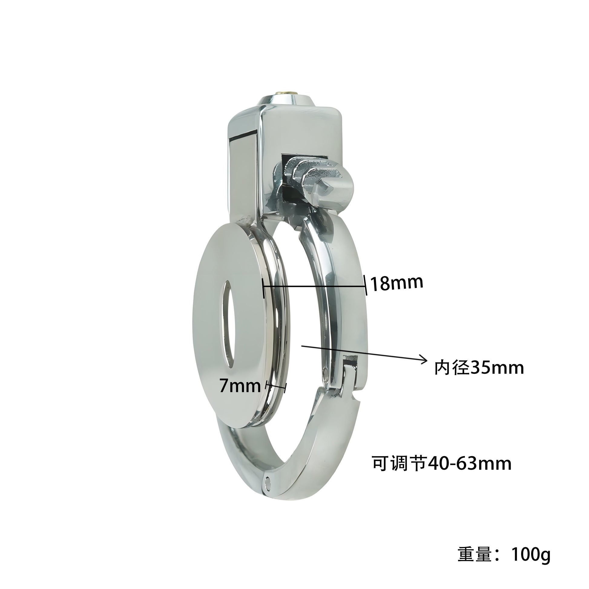 Crafted from lightweight aluminum alloy and 304 stainless steel, this cage combines strength with comfort, weighing only 100g. The adjustable base ring allows for a personalized fit from 40mm to 63mm, ensuring both security and ease—whether you're wearing it for a few hours or several days.