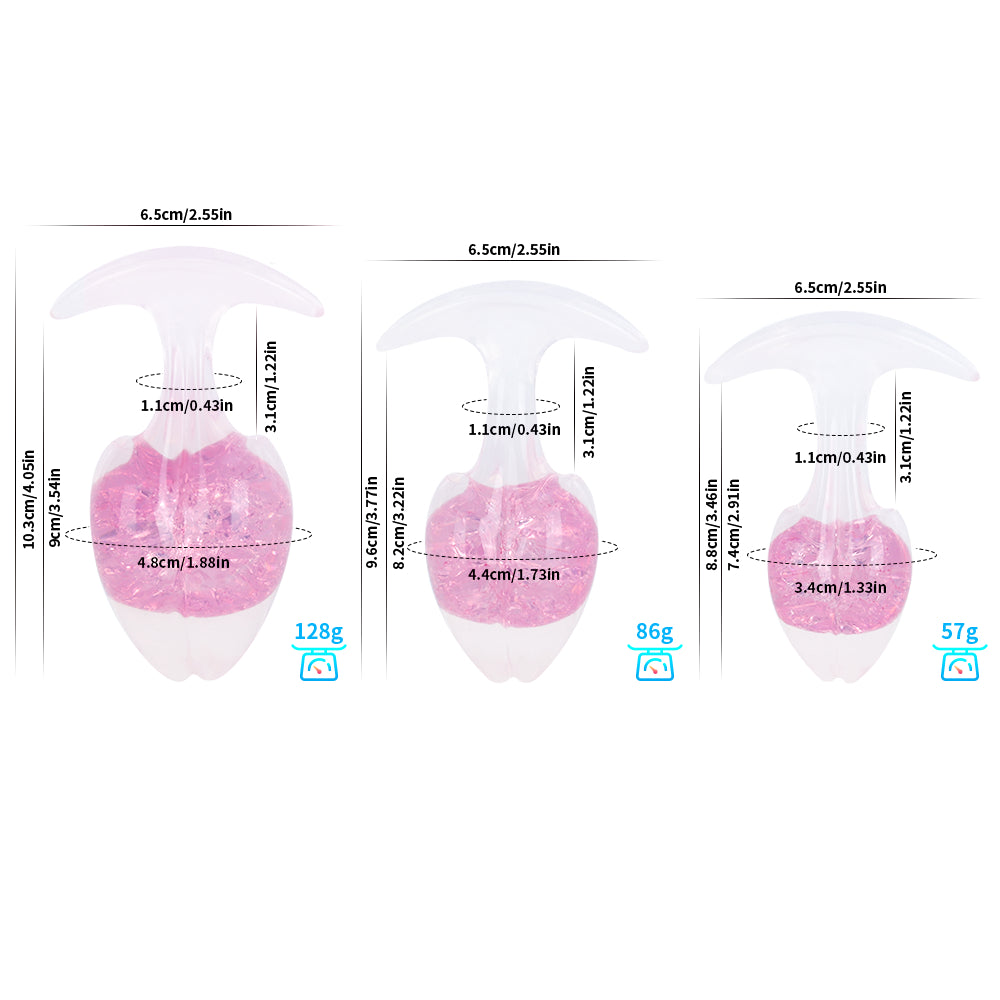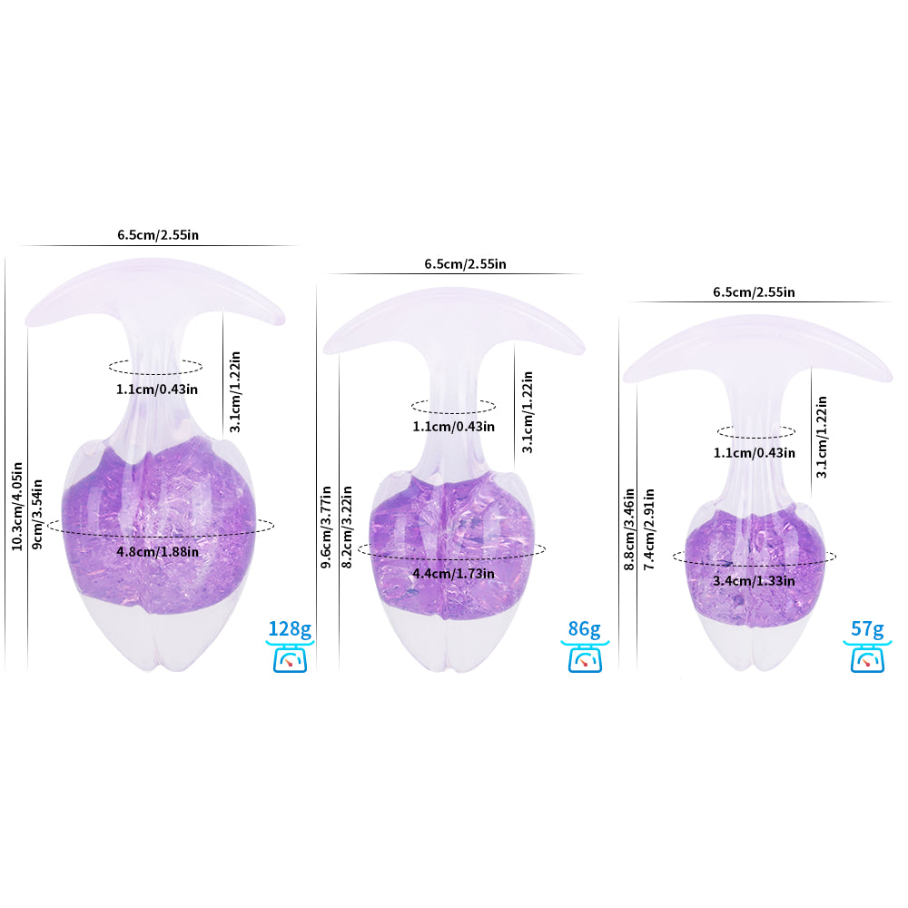 • Perfect for Aesthetic Enthusiasts and Beginners: With their petite size, smooth shape, and crystal-like appearance, these plugs are ideal for beginners and those who appreciate aesthetic beauty in their products. The sparkling core and diverse color selection add a playful and luxurious element to intimate exploration.