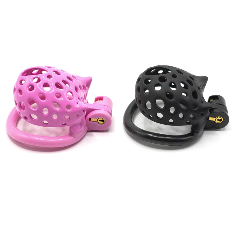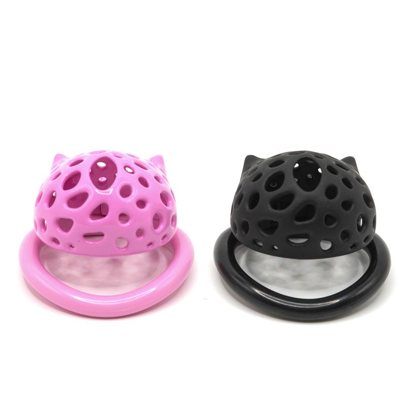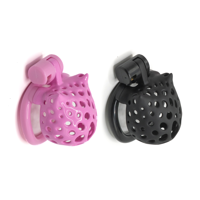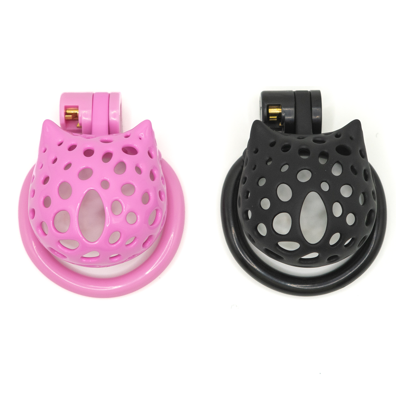 Cat-Shaped Resin Chastity Cage – Lightweight (75g), Breathable, 4 Ring Sizes, Pink or Black