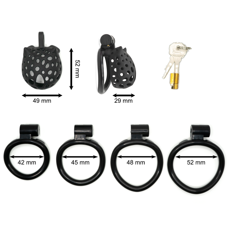 Discover the Cat-Shaped Pink Resin Chastity Cage – ultra-lightweight (75g), breathable, and discreet. Includes 4 ergonomic base rings (42–52mm) for a perfect fit. Ideal for long-term wear with secure built-in lock.