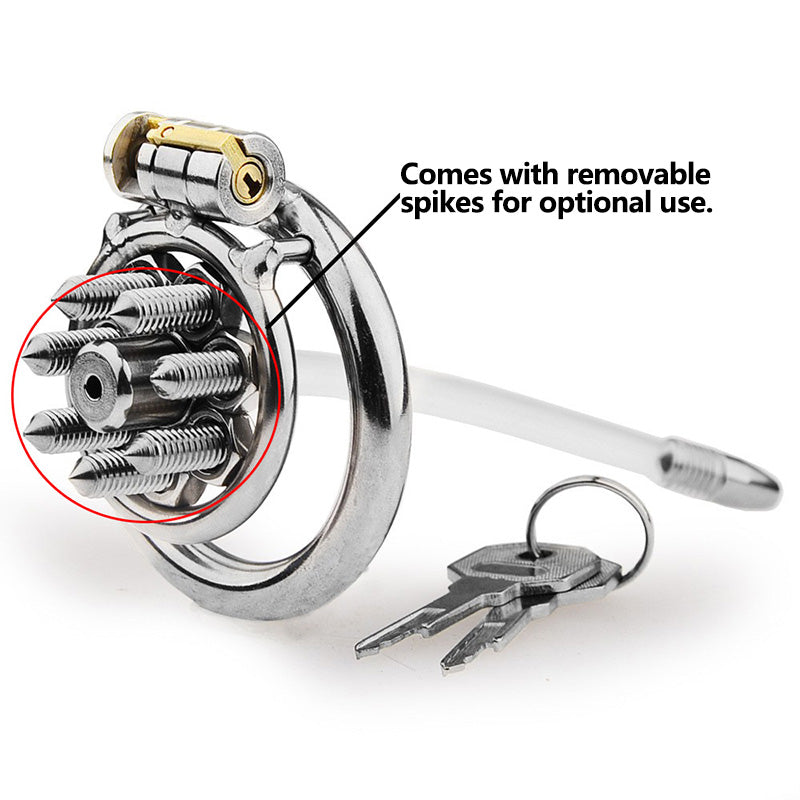 FLAT CHASTITY CAGE SPIKED METAL CATHETER
