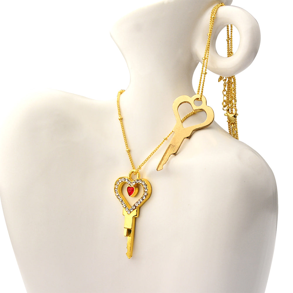 Heart-Shaped Chastity Key Pendant with Rhinestones – Wearable Lock Key Necklace
