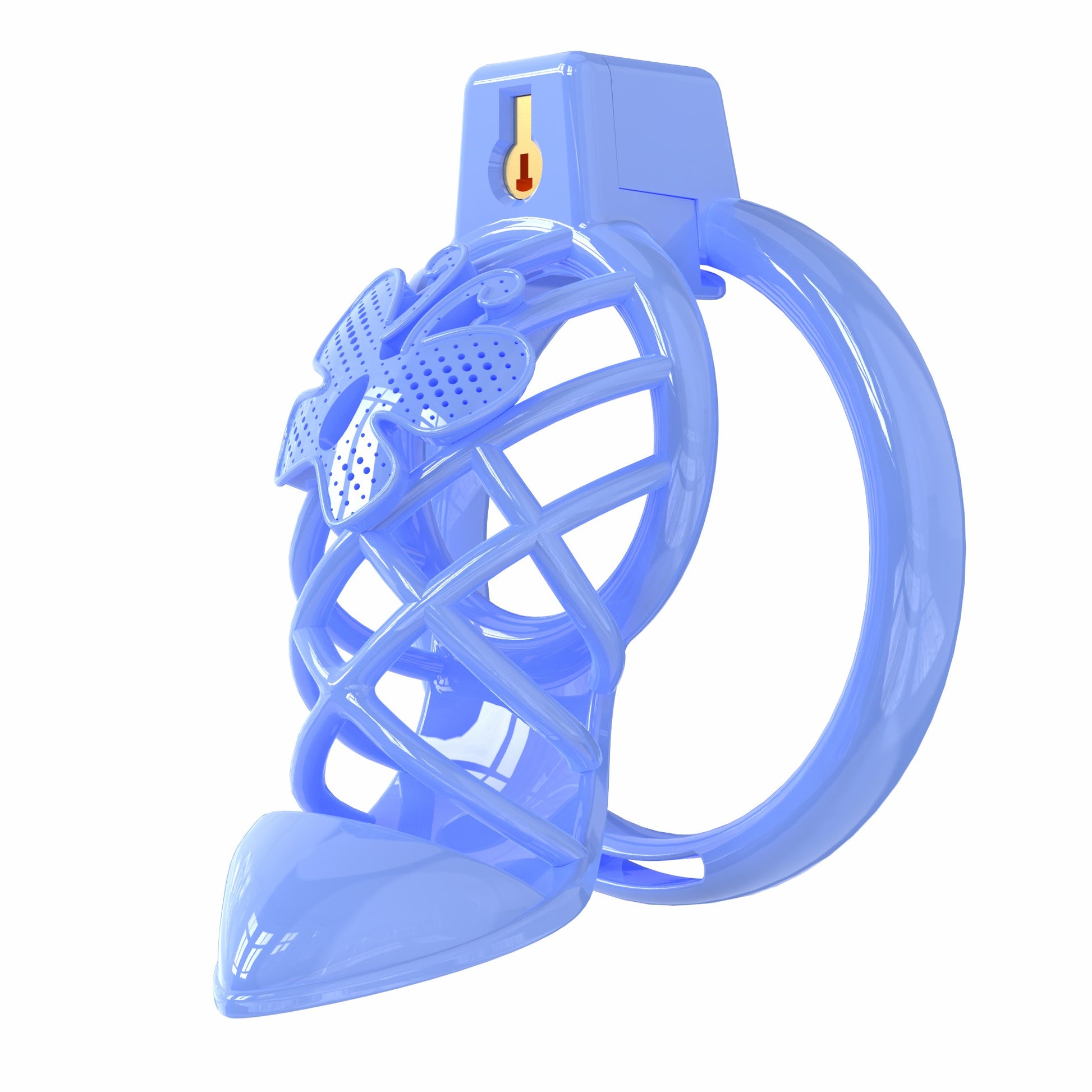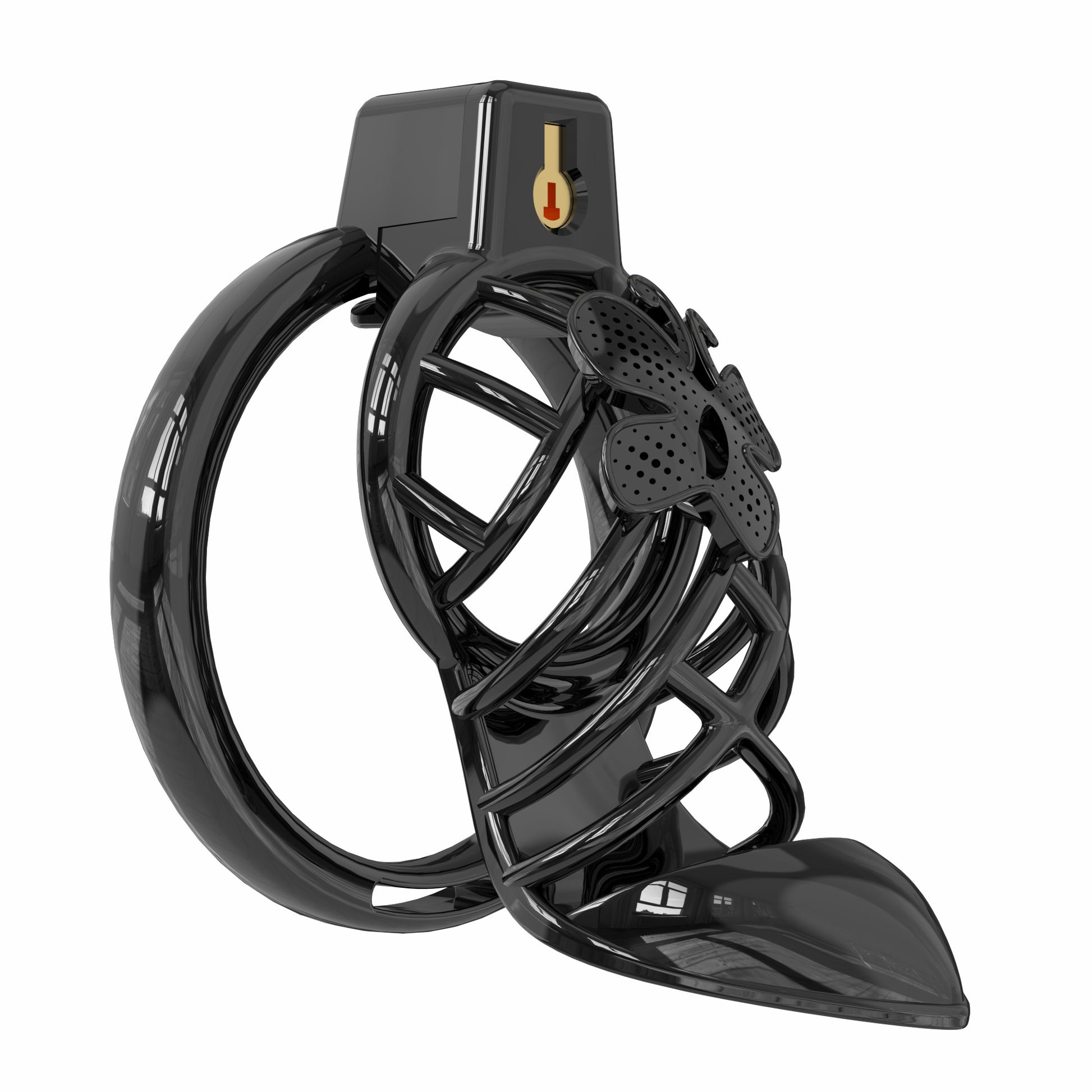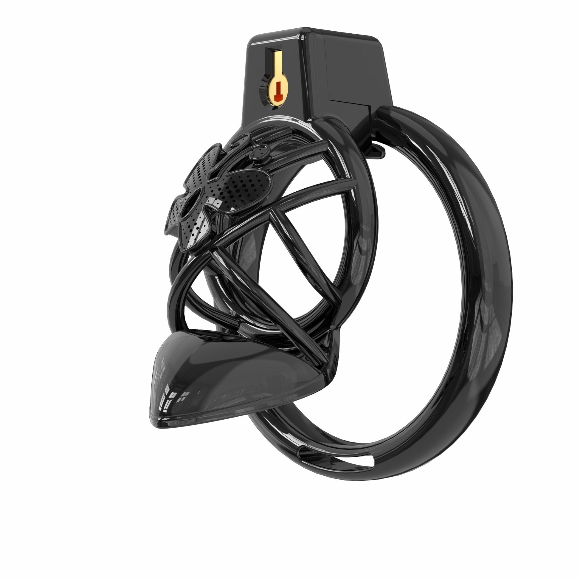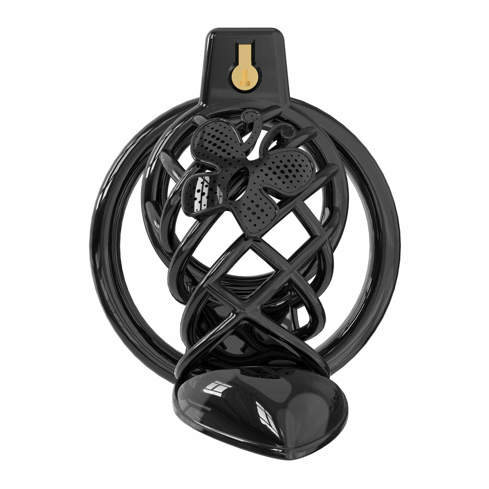 The caged design offers excellent ventilation for hygiene and long-term wear, while maintaining full denial with secure front coverage. -