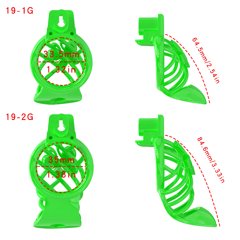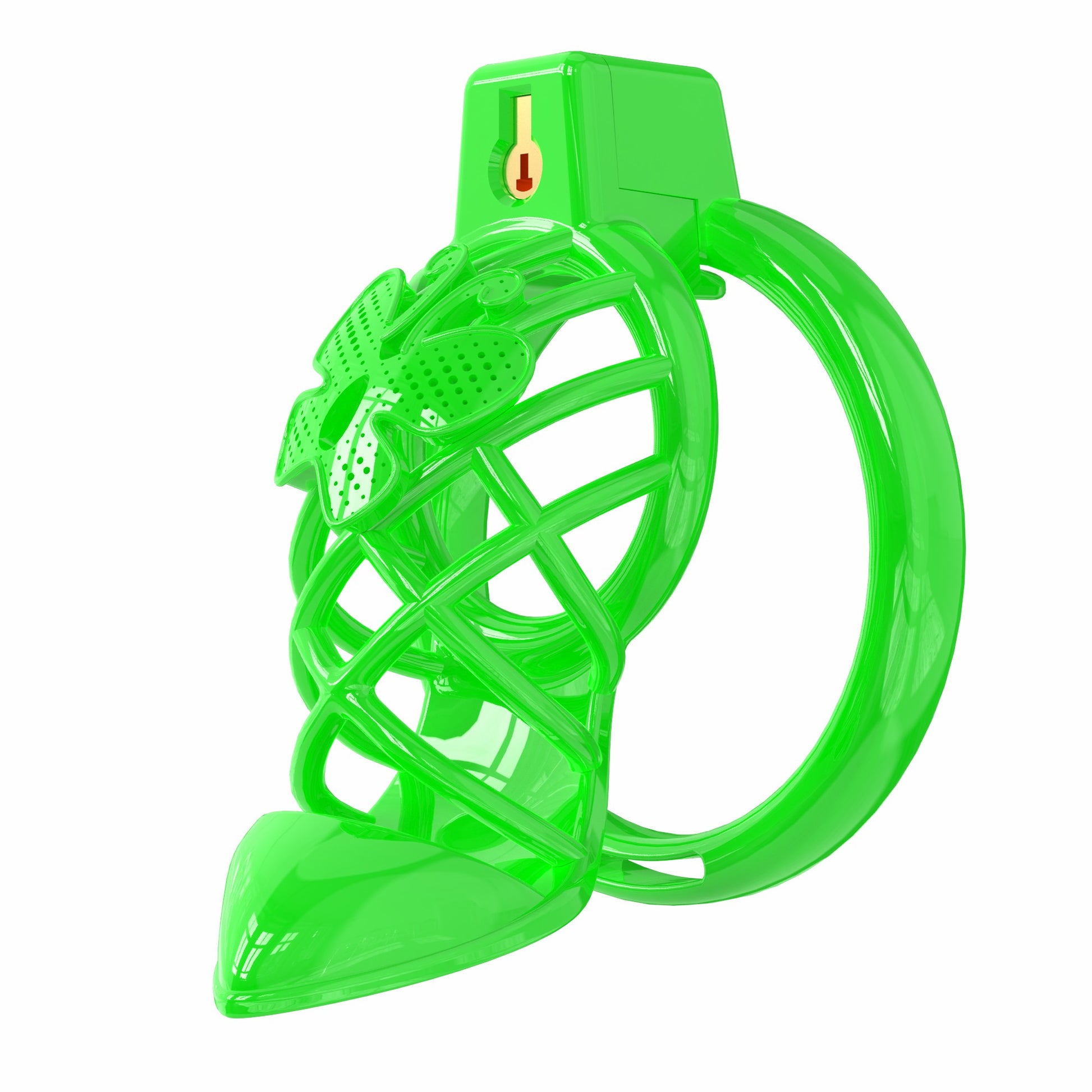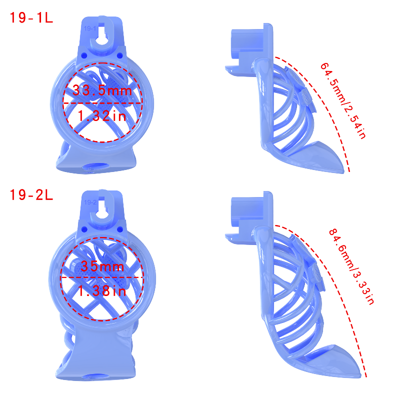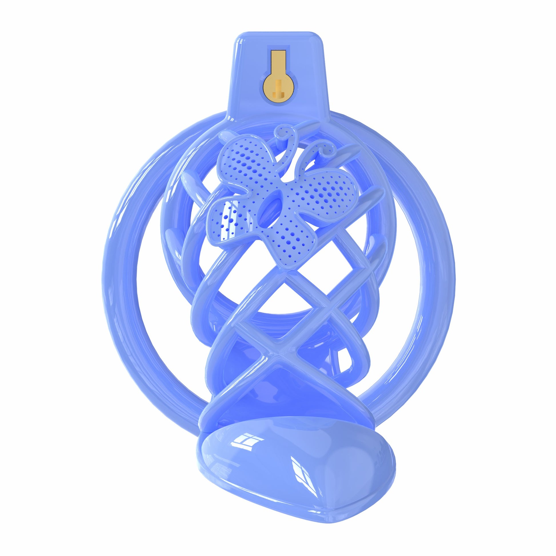 The caged design offers excellent ventilation for hygiene and long-term wear, while maintaining full denial with secure front coverage. -