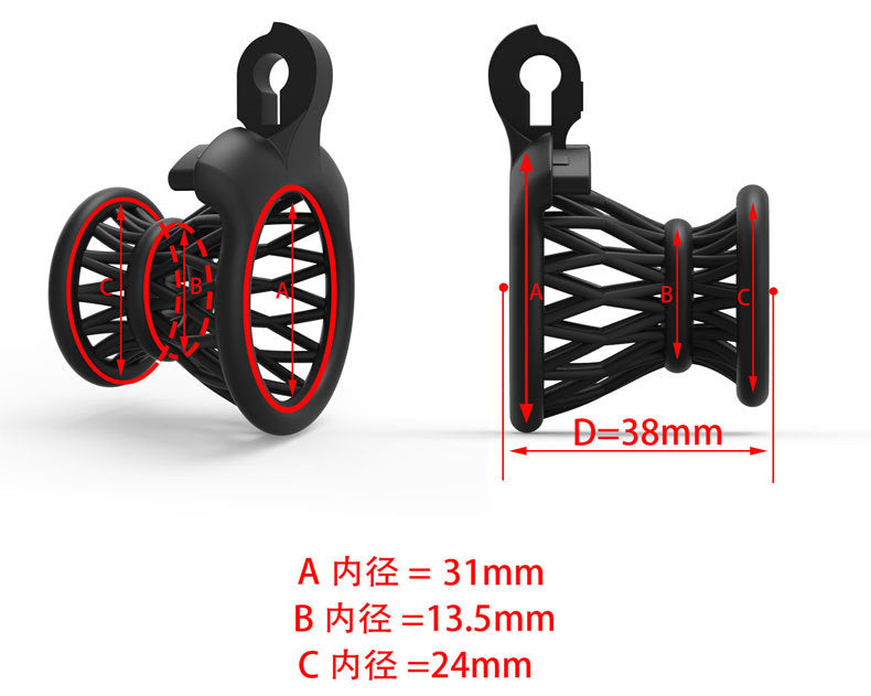 Includes 1 cage, 1 lock cylinder, 2 keys, and 1 carabiner-style ring. Everything you need to begin or elevate your chastity journey, packaged to perfection.