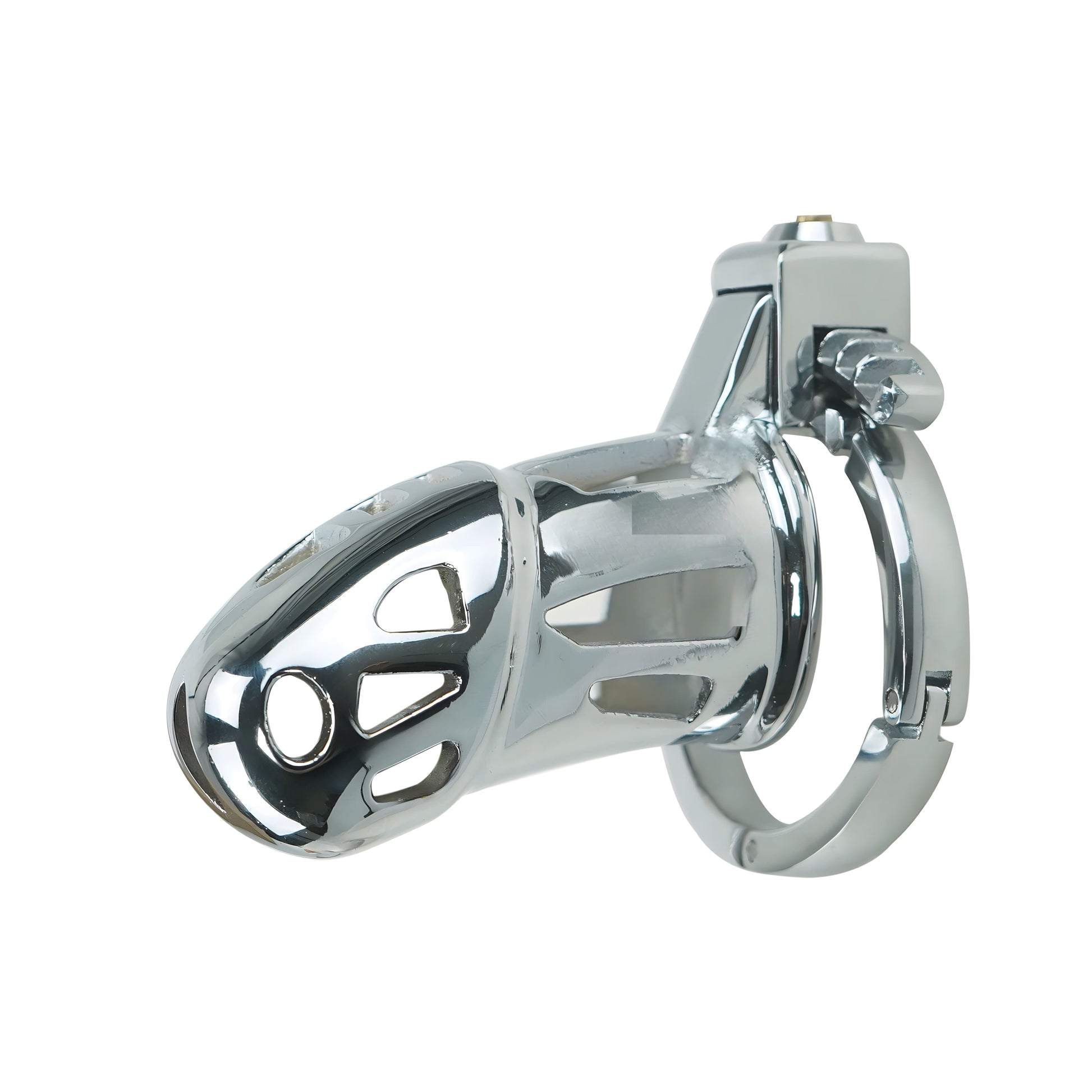 Bold, sleek, and built for control — this full-metal chastity cage is designed for those who crave serious play with a lightweight touch.
