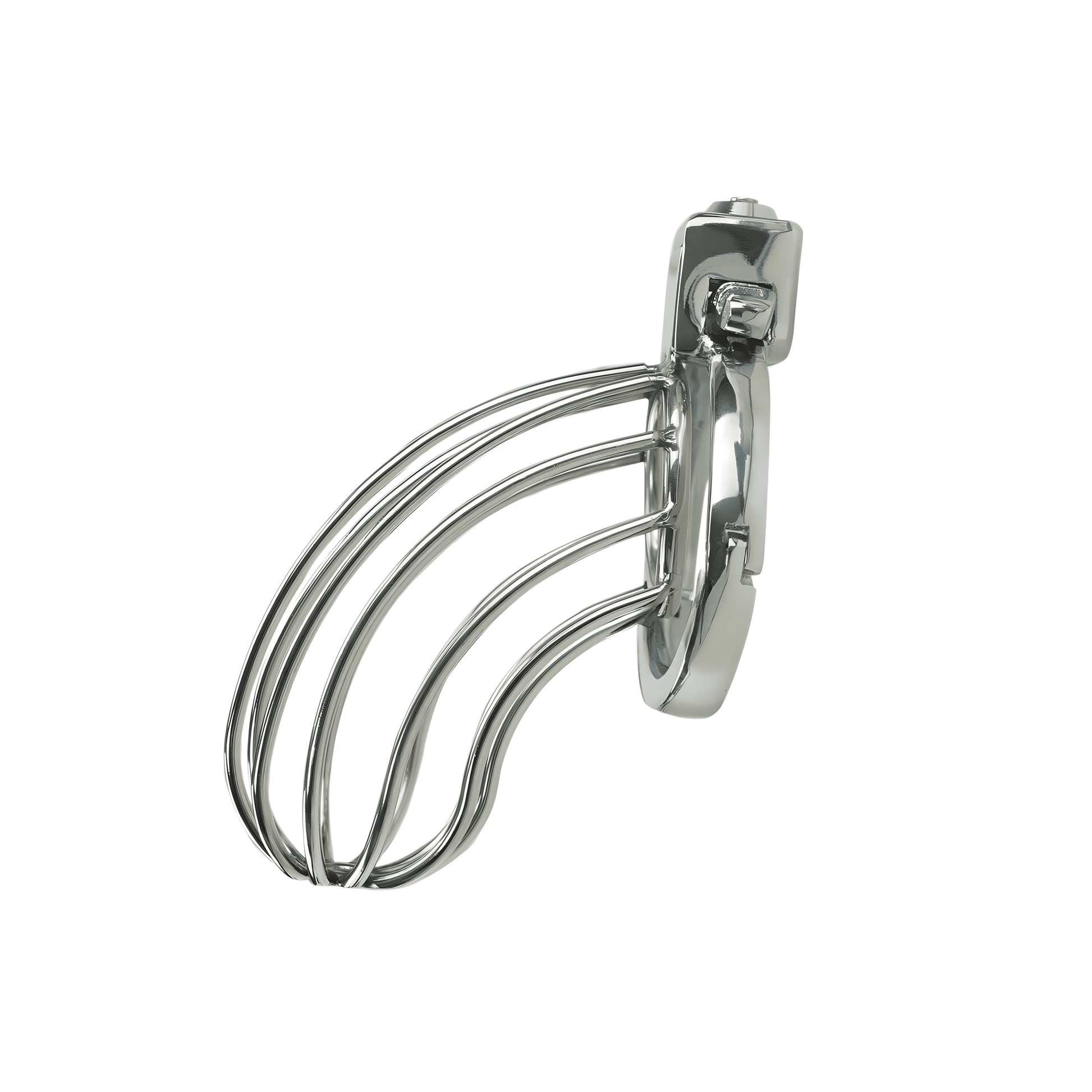 Built for strength, designed for control — this lightweight full-metal chastity cage combines sleek engineering with a bold cage-style front.