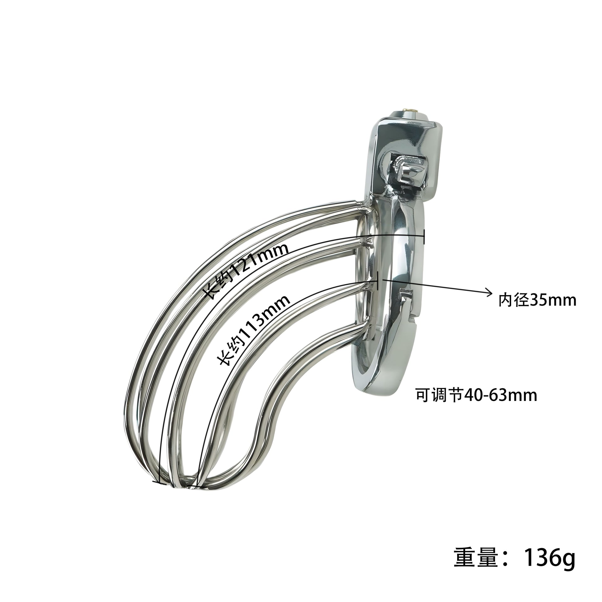 Lightweight Metal Chastity Cage – Steel Cage Front, 40–63mm Adjustable Alloy Ring, Built-in Lock