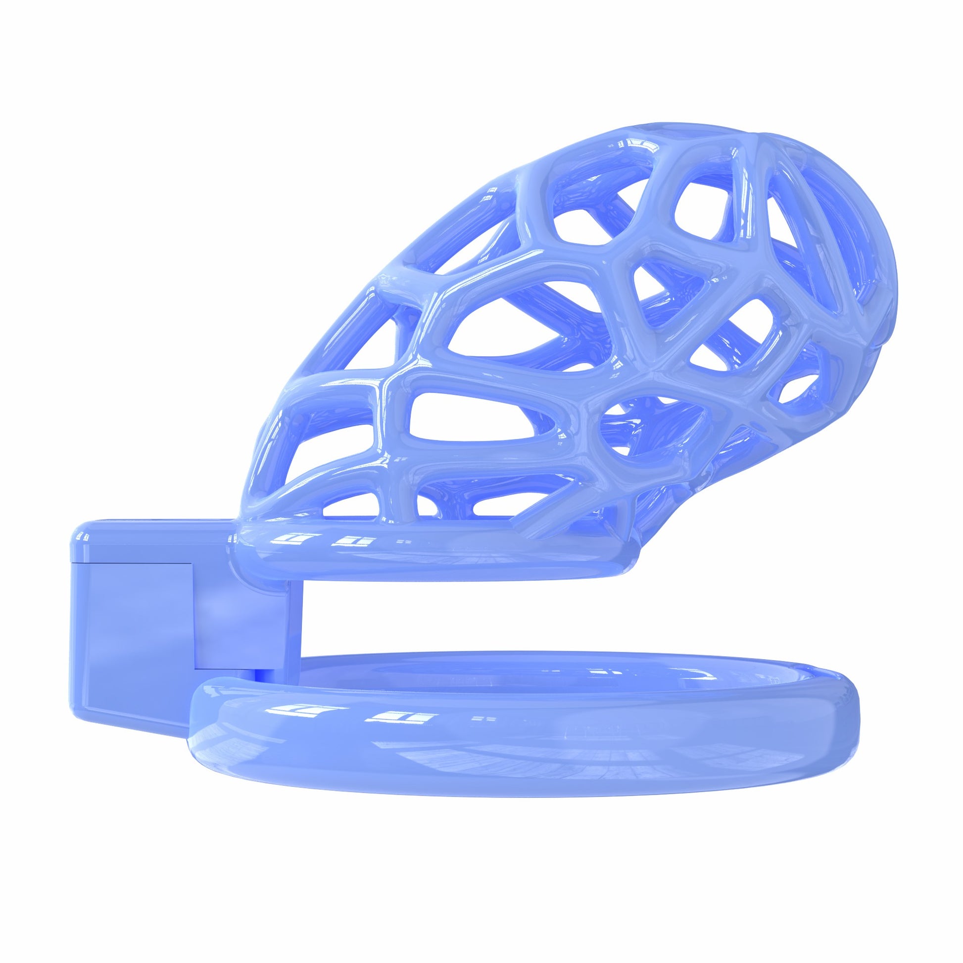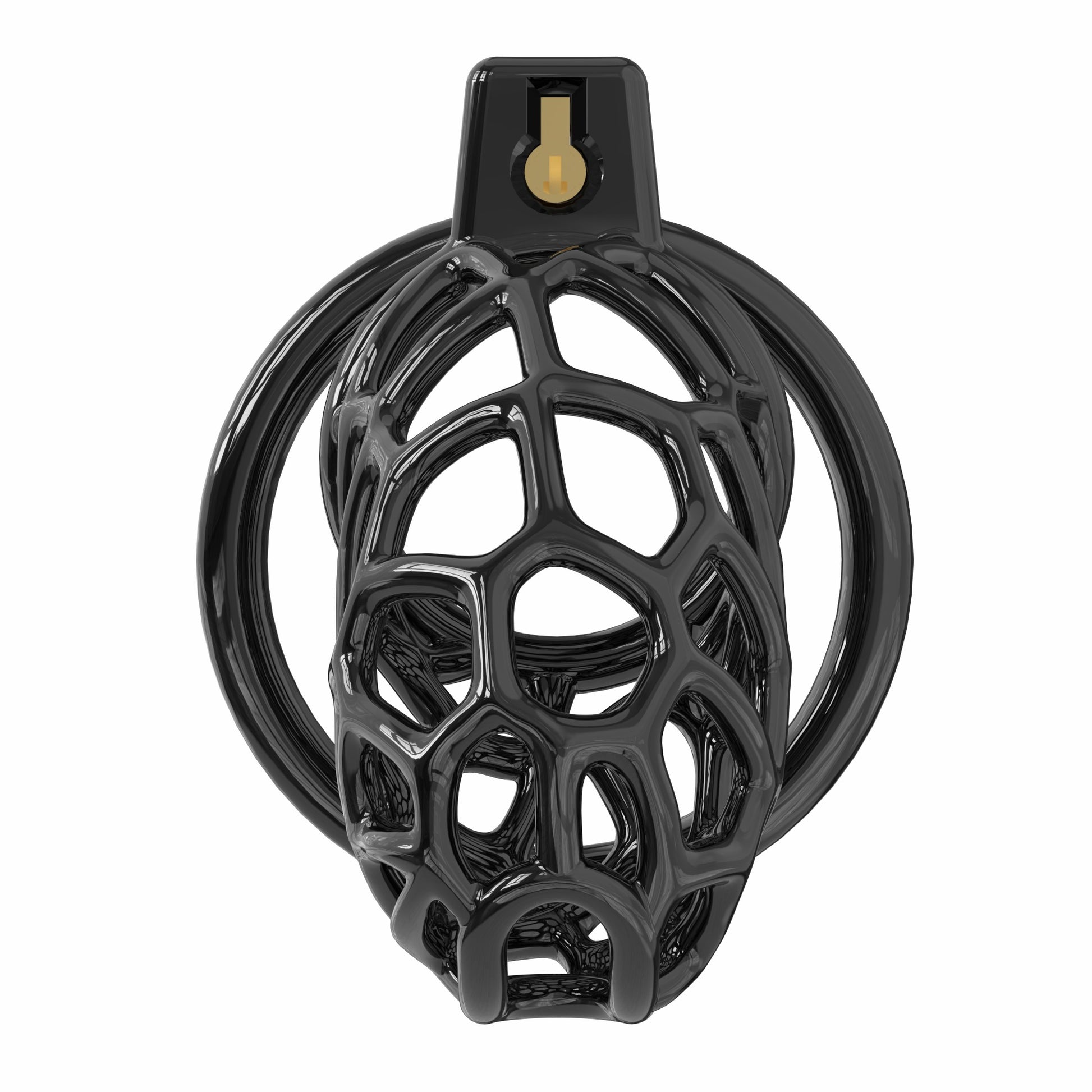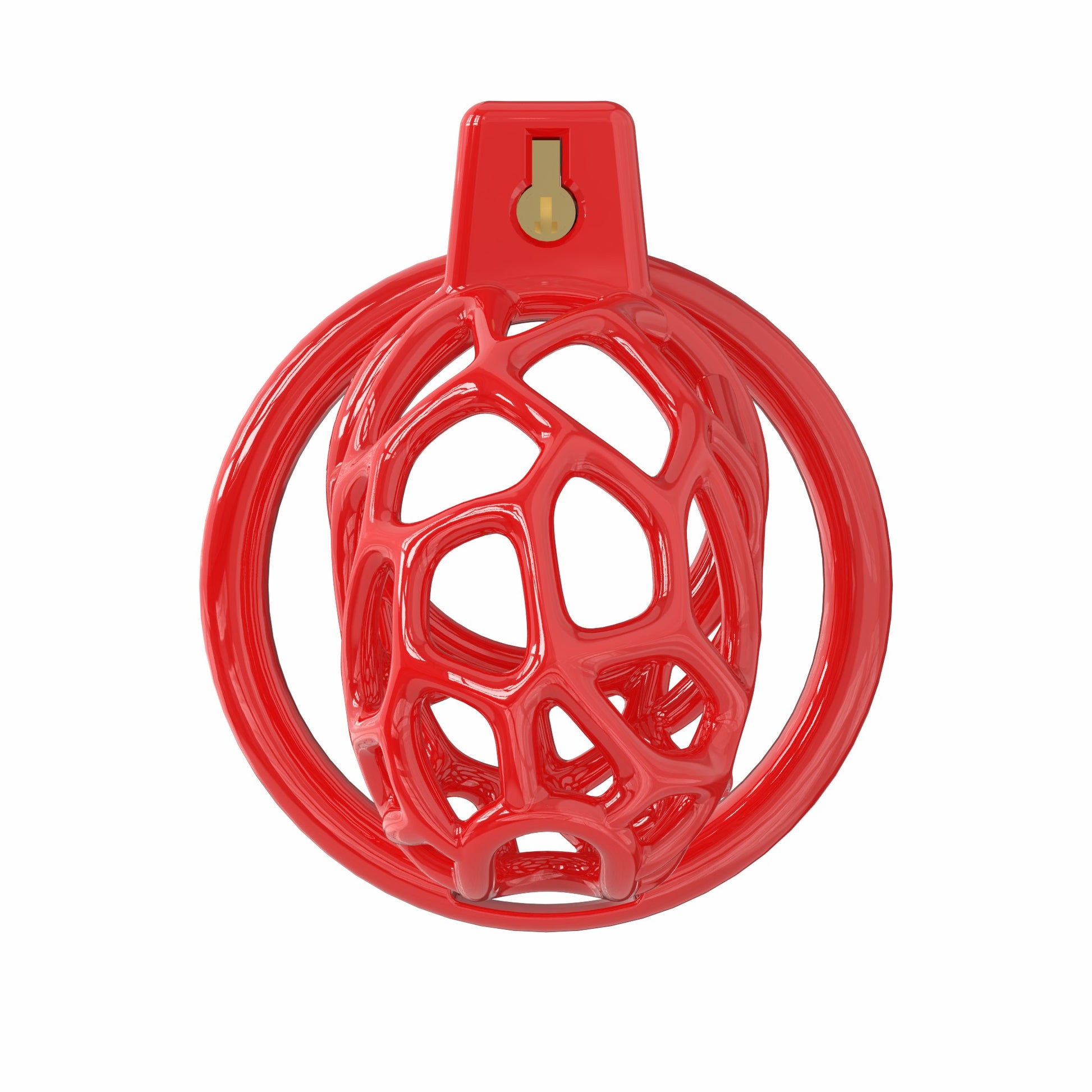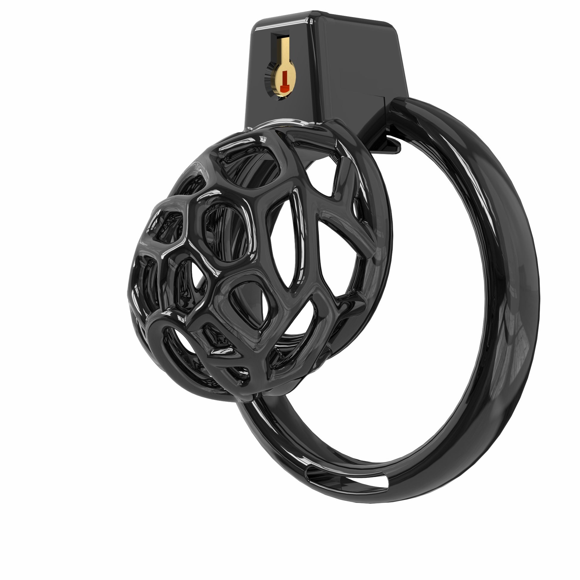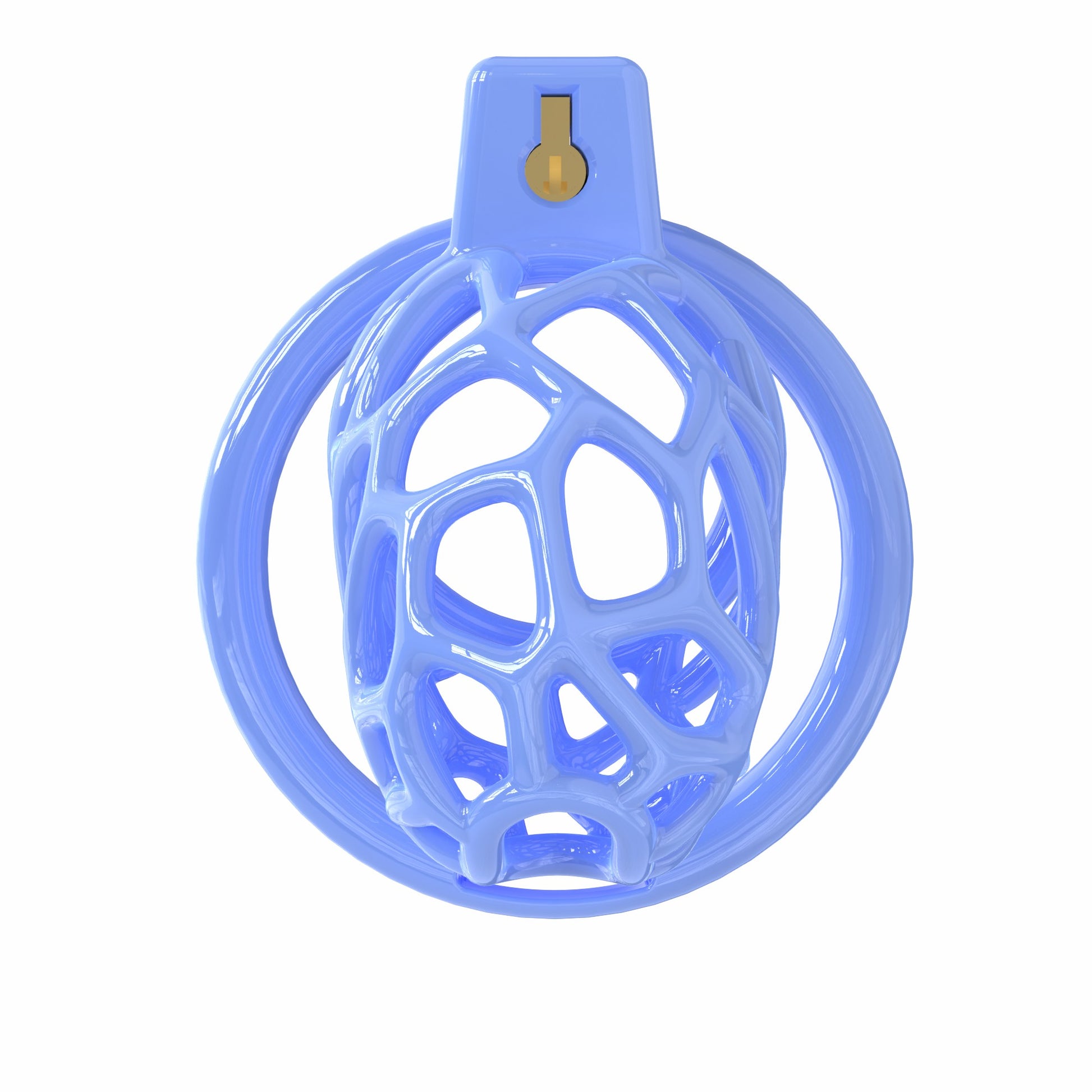 Explore a new level of breathable comfort and visual intrigue with this ultra-light resin chastity cage featuring a unique random mesh design.Discover a new level of breathable comfort and visual appeal with this ultra-light resin chastity cage, featuring a distinctive random mesh design.