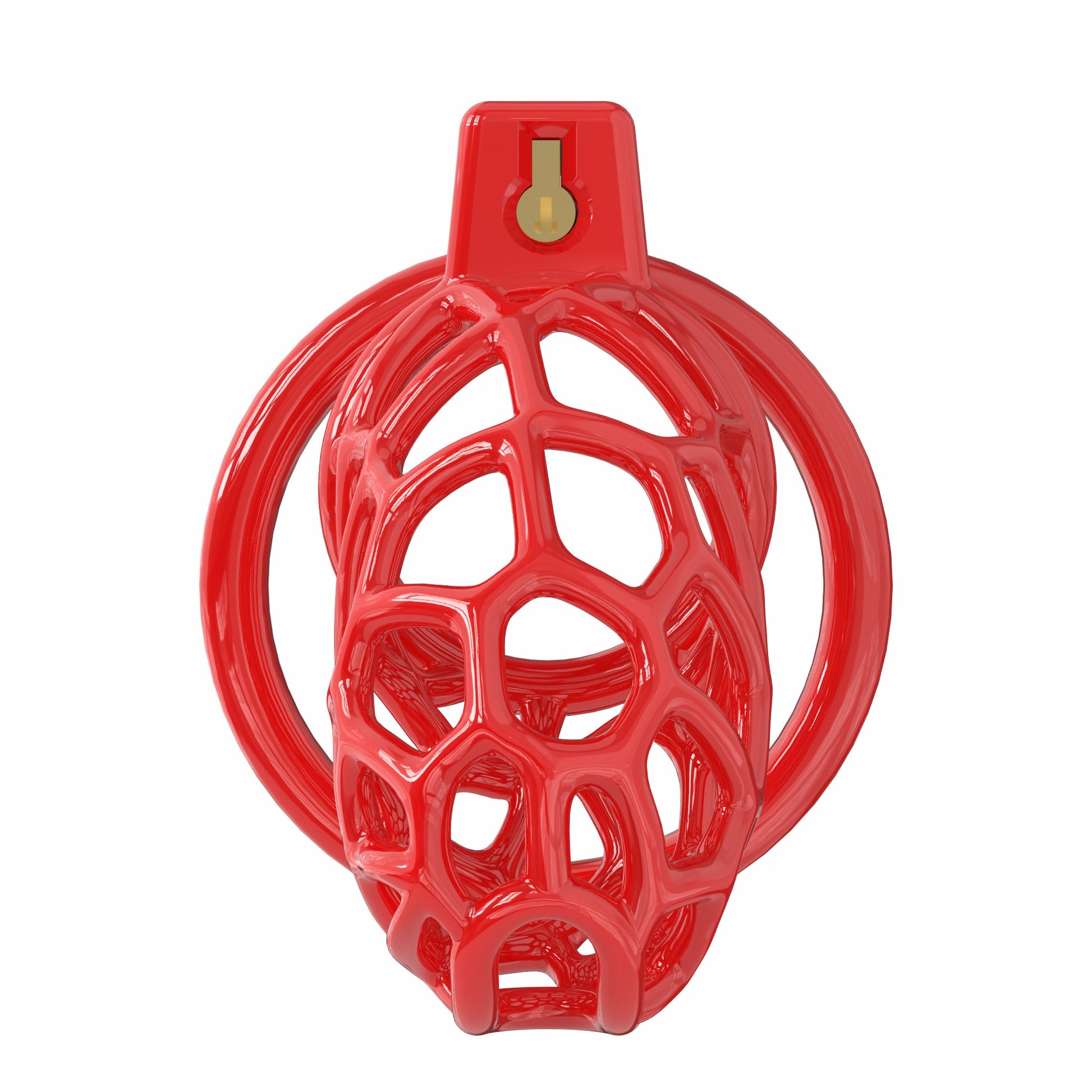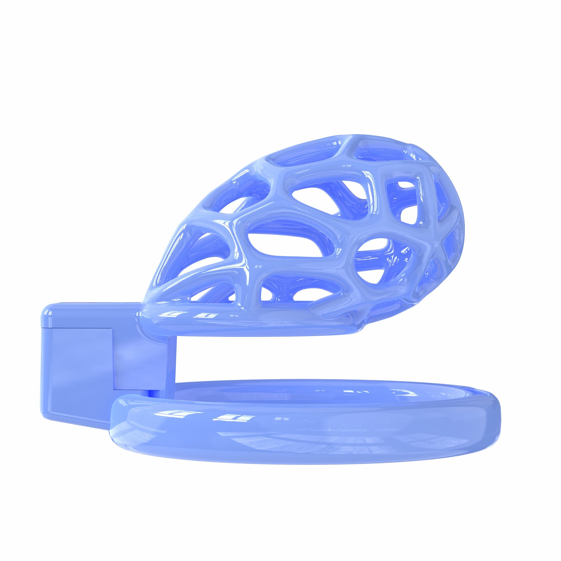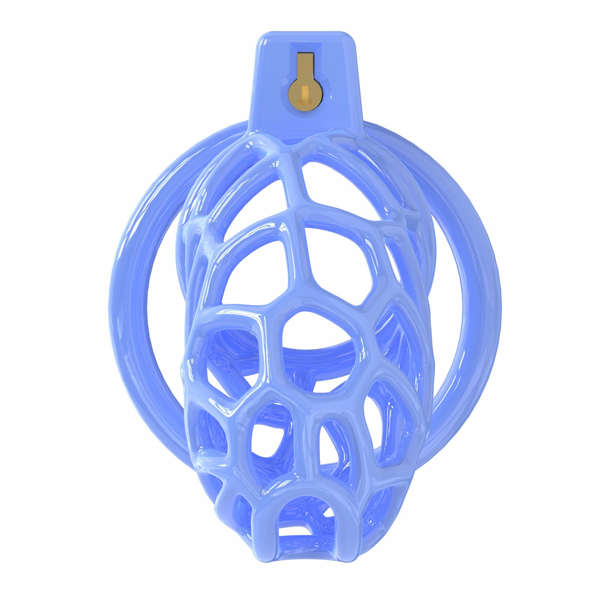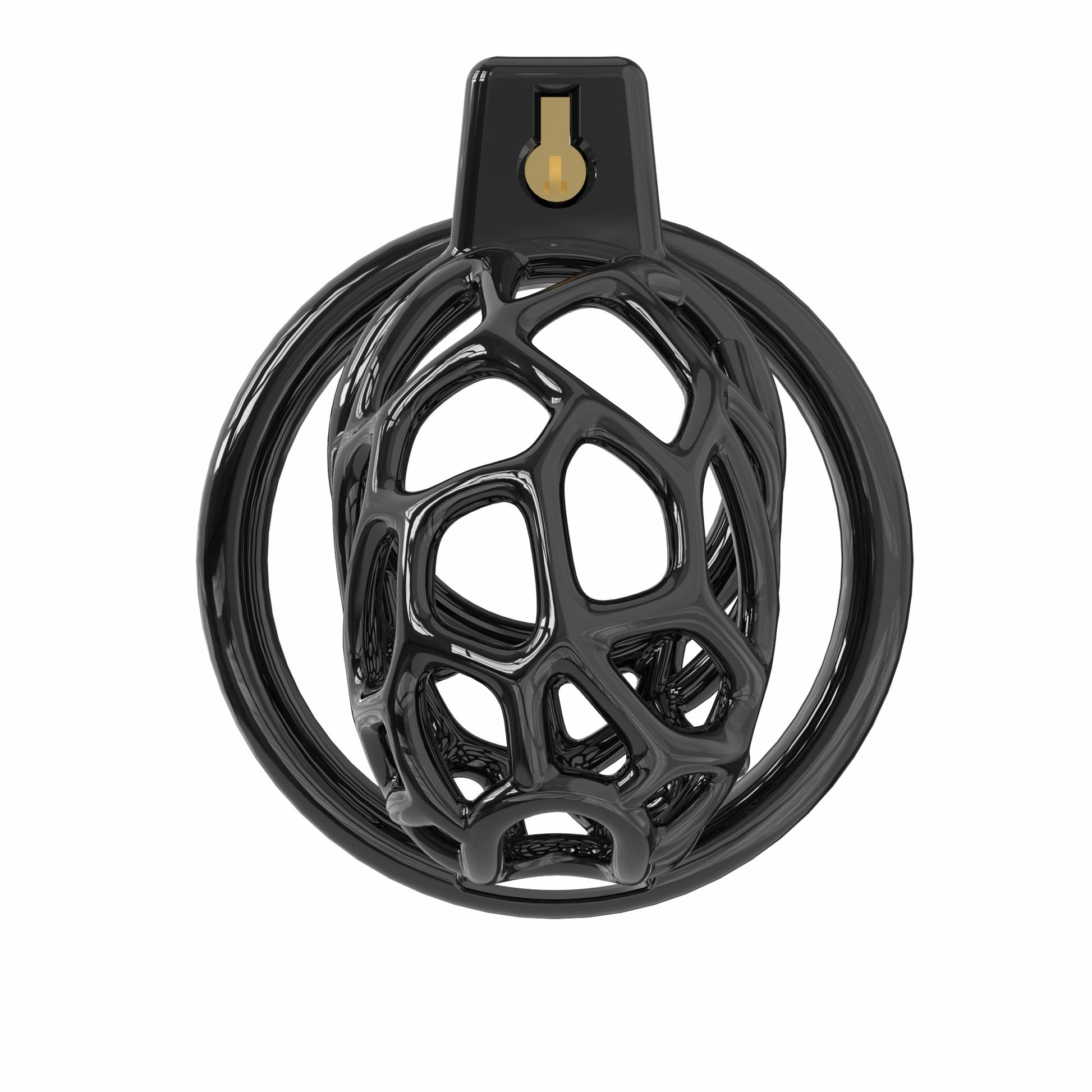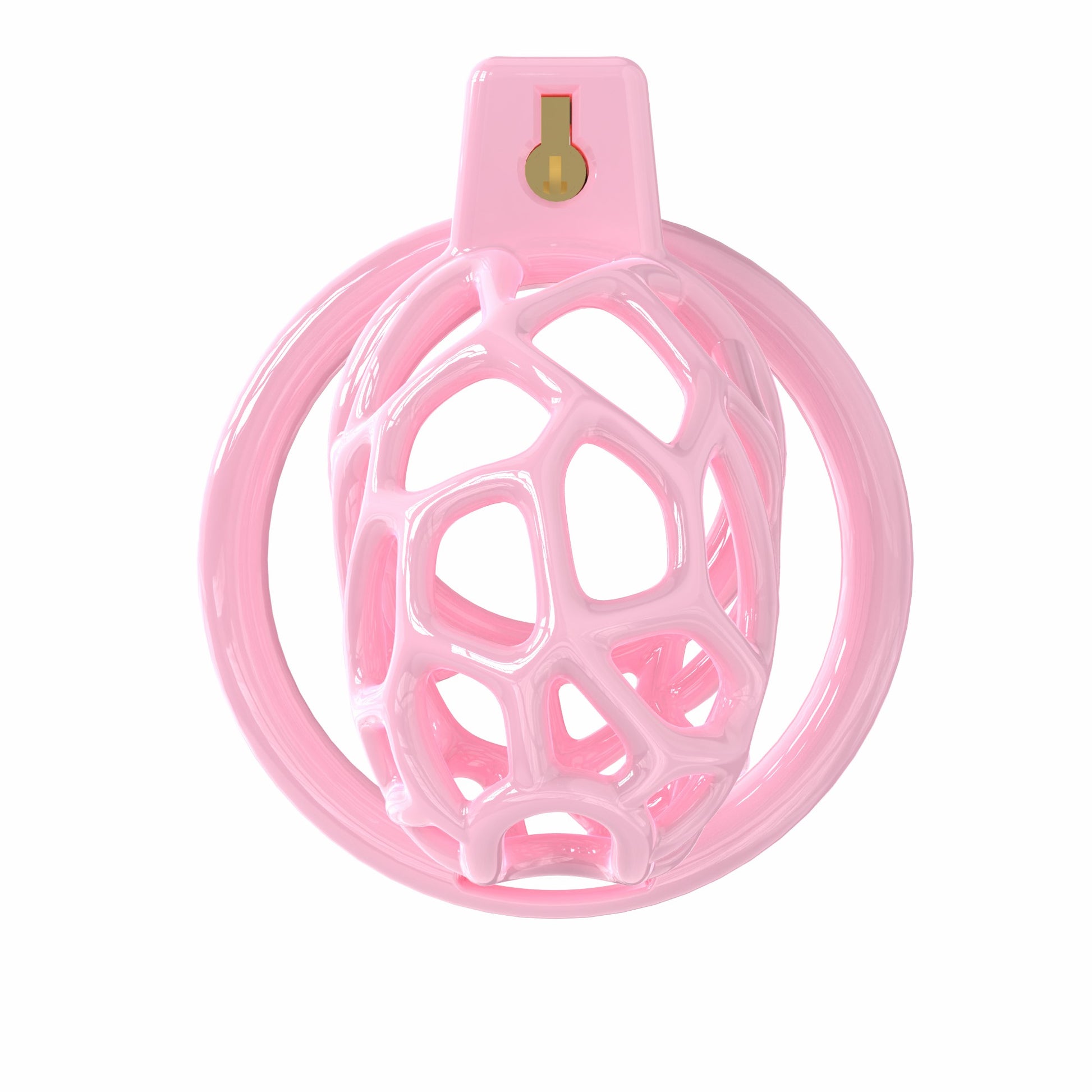 Explore a new level of breathable comfort and visual intrigue with this ultra-light resin chastity cage featuring a unique random mesh design.Discover a new level of breathable comfort and visual appeal with this ultra-light resin chastity cage, featuring a distinctive random mesh design.