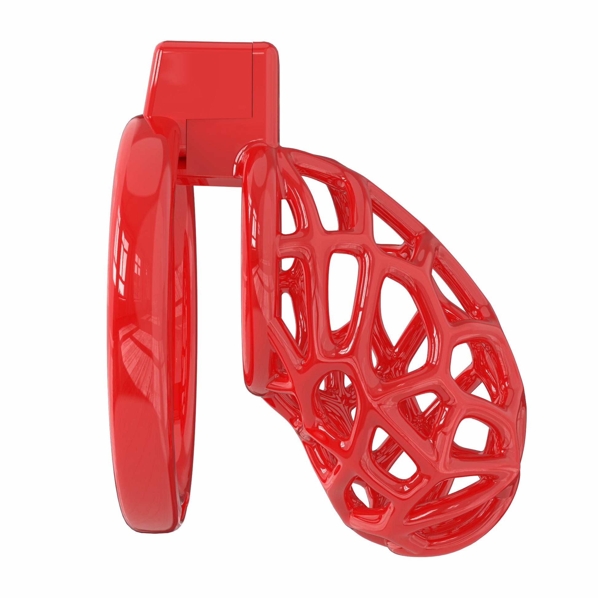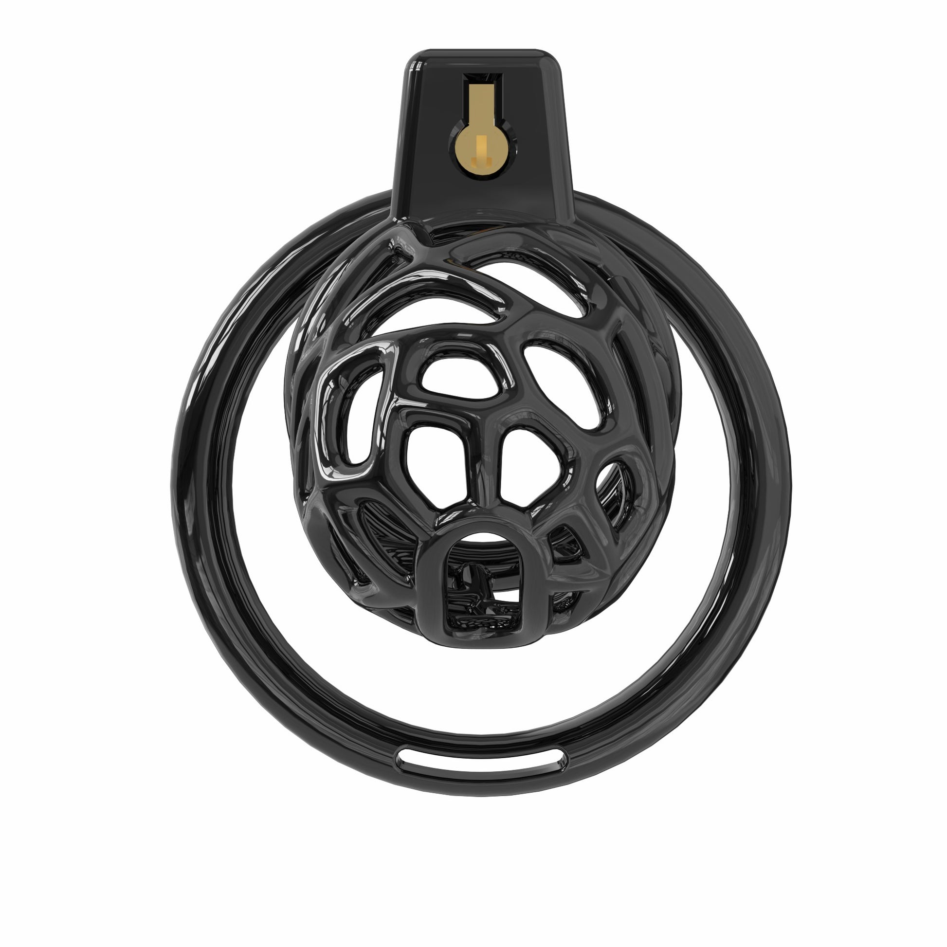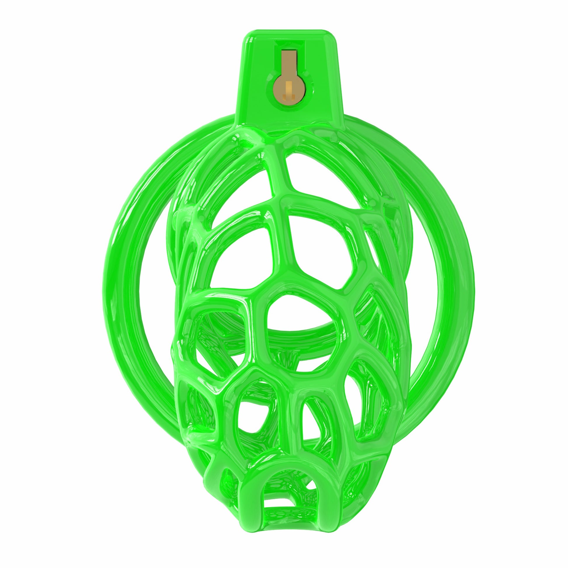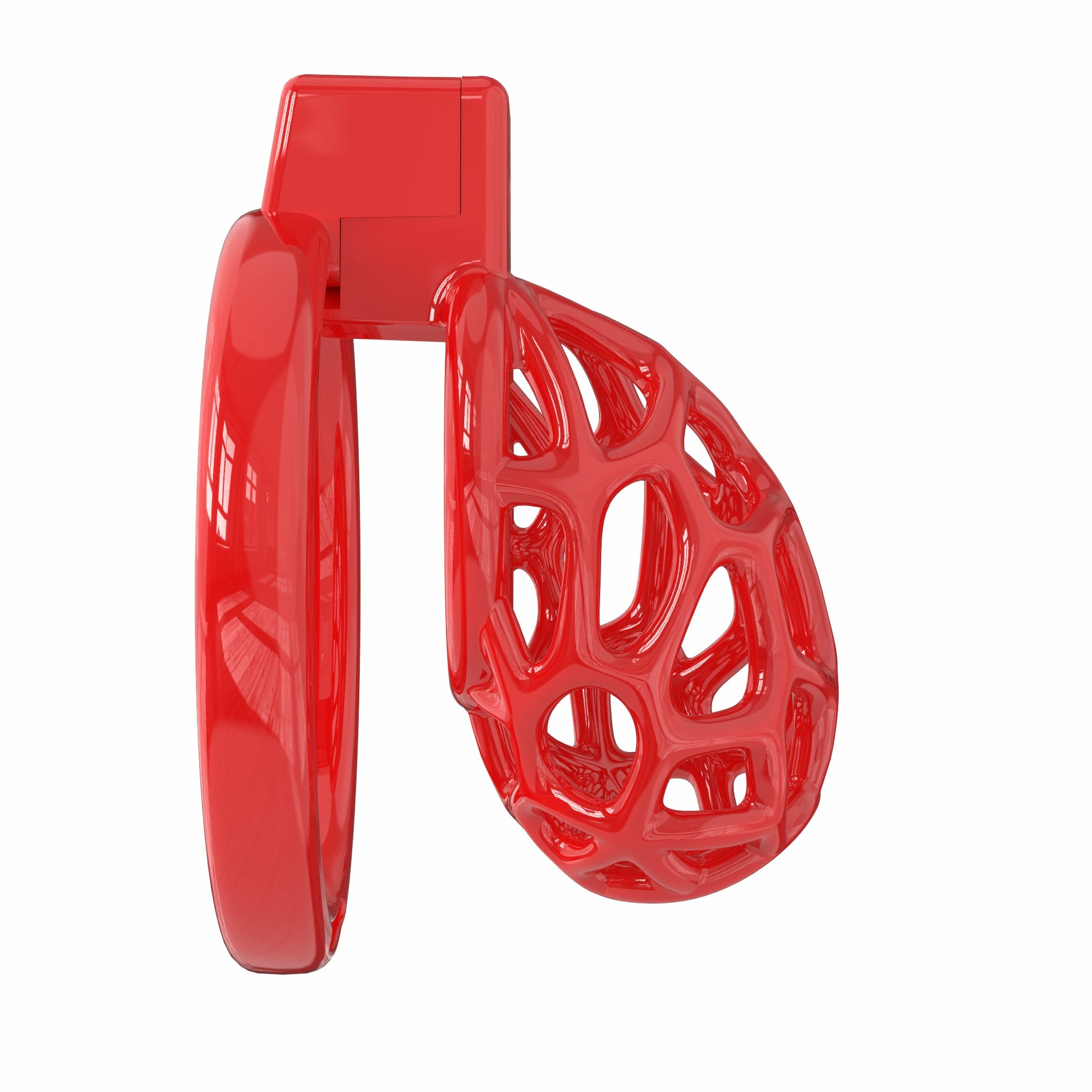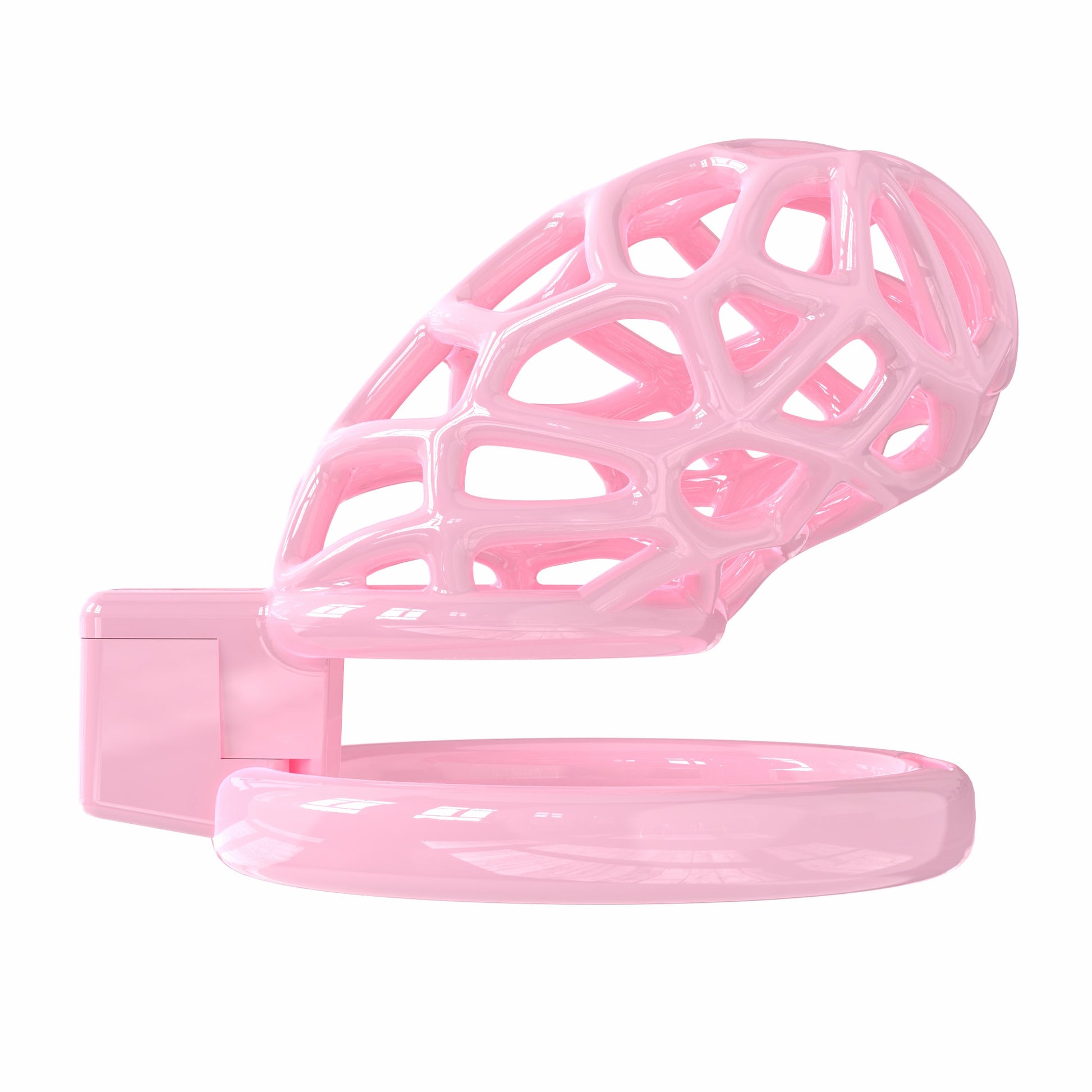 Explore a new level of breathable comfort and visual intrigue with this ultra-light resin chastity cage featuring a unique random mesh design.Discover a new level of breathable comfort and visual appeal with this ultra-light resin chastity cage, featuring a distinctive random mesh design.