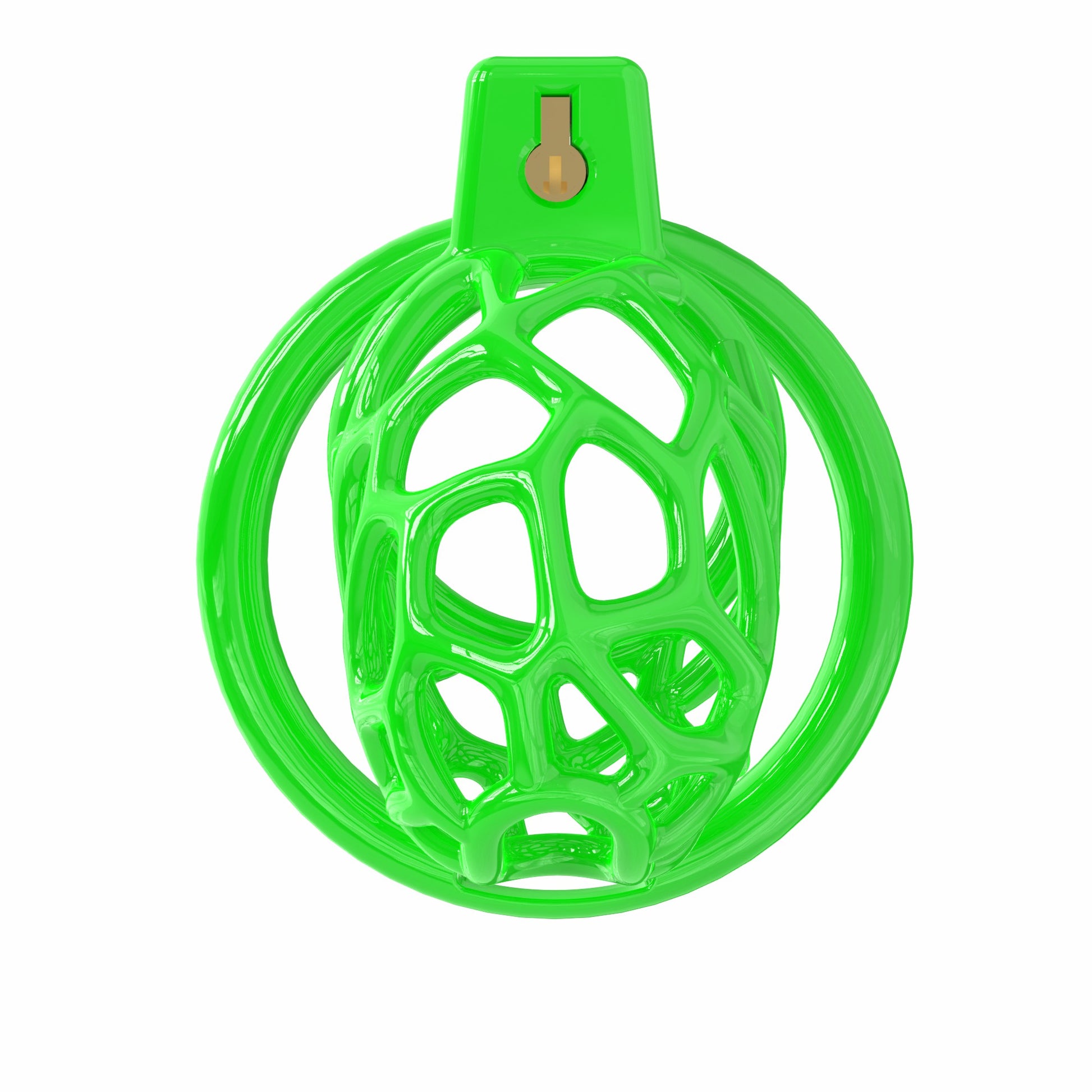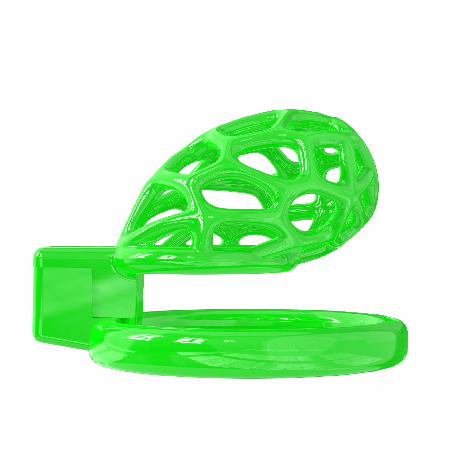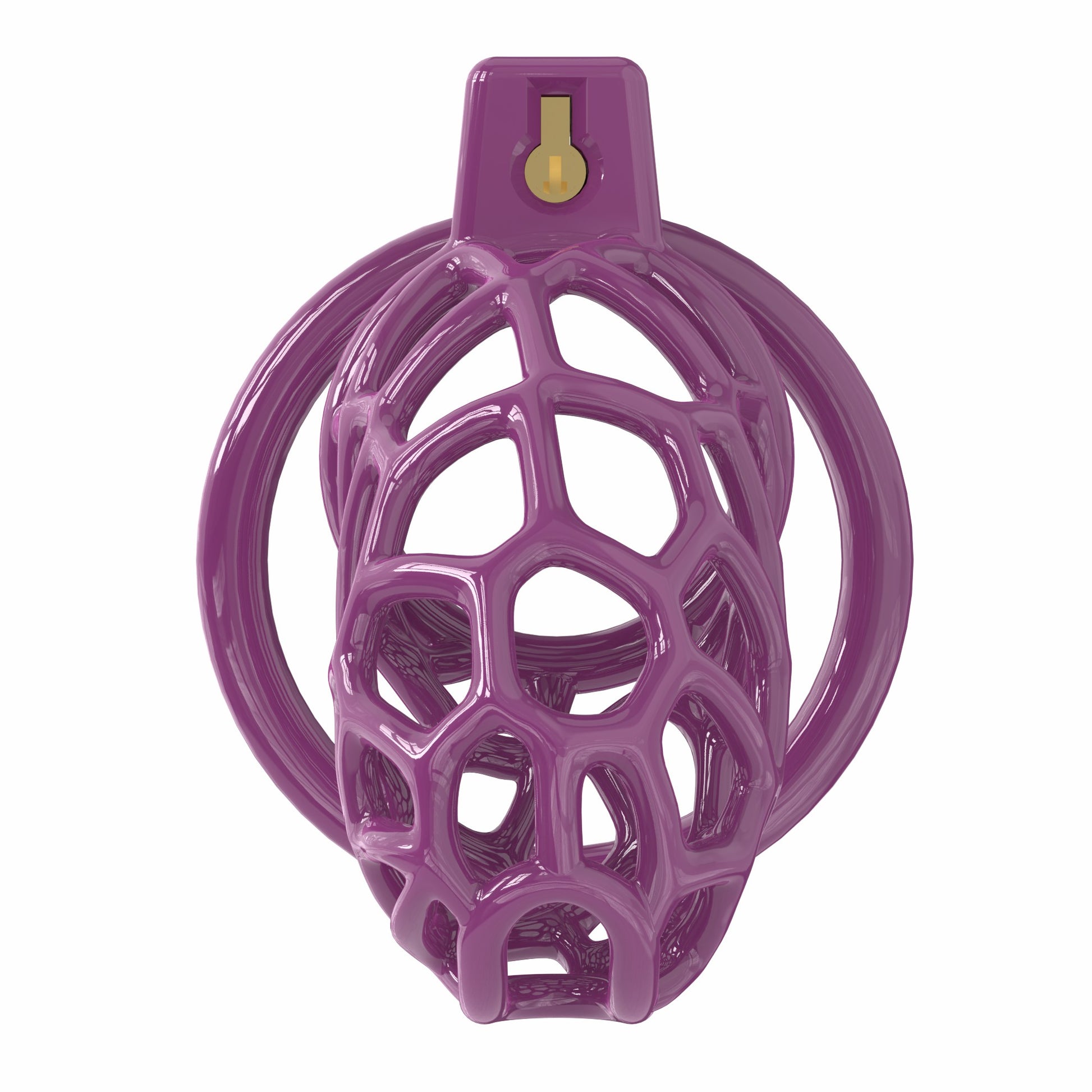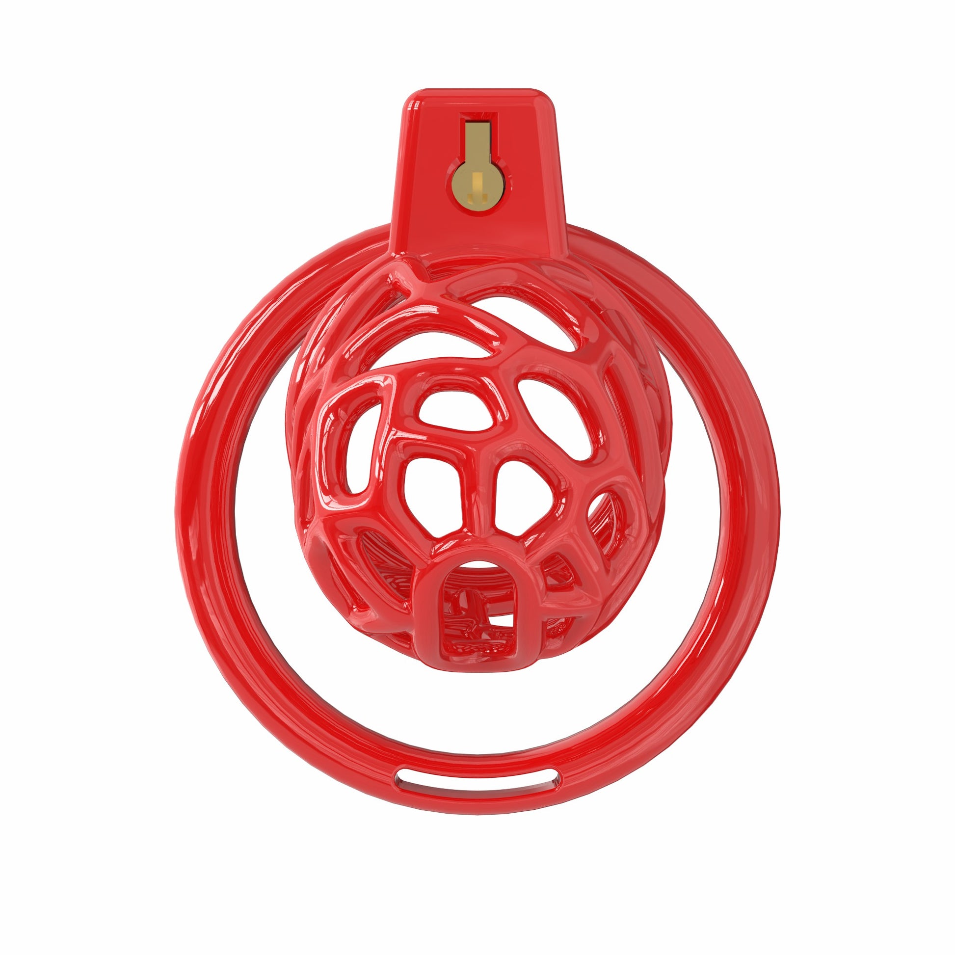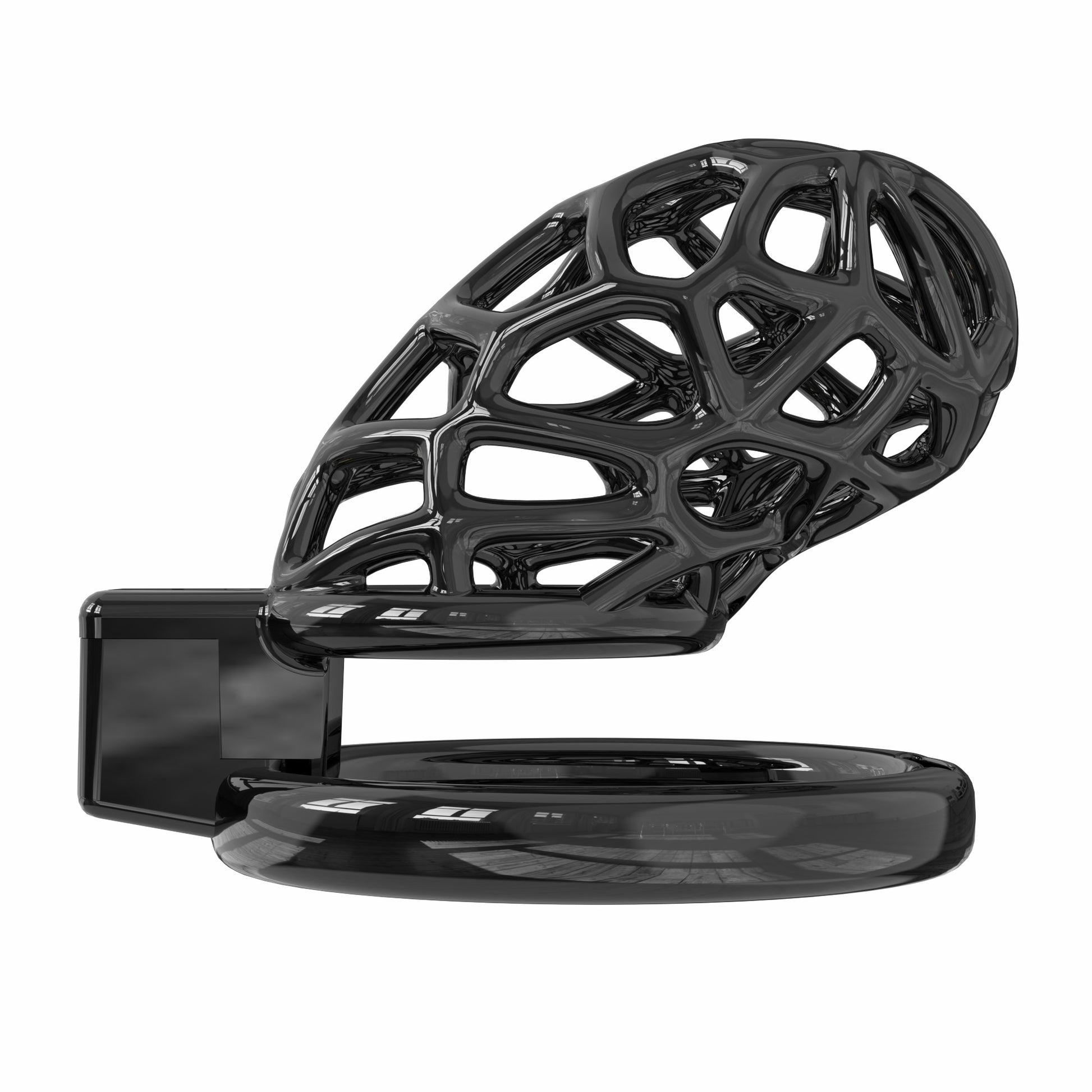 Explore a new level of breathable comfort and visual intrigue with this ultra-light resin chastity cage featuring a unique random mesh design.Discover a new level of breathable comfort and visual appeal with this ultra-light resin chastity cage, featuring a distinctive random mesh design.
