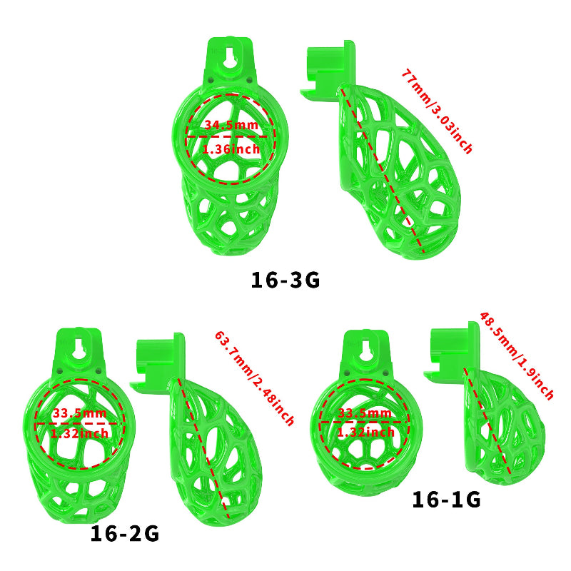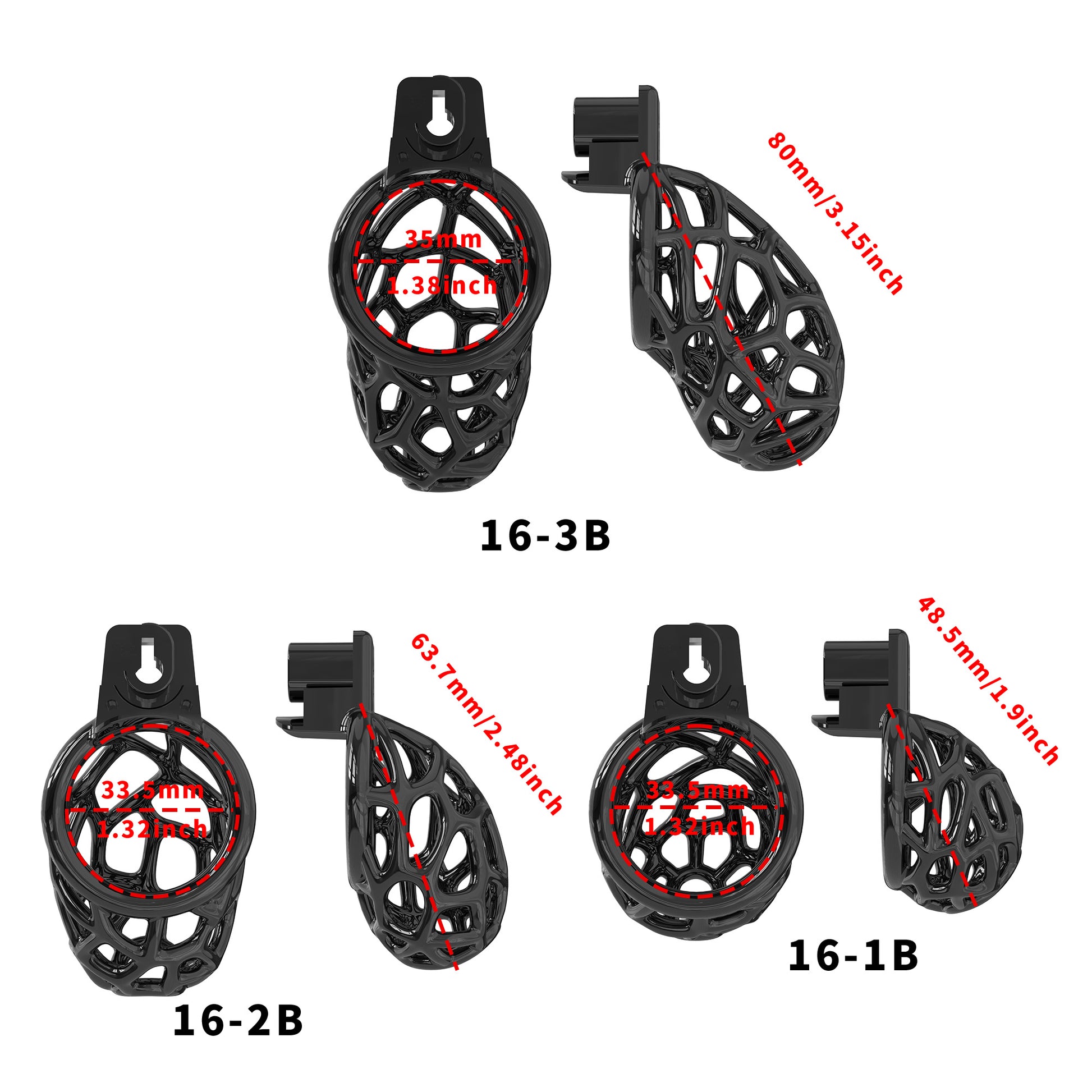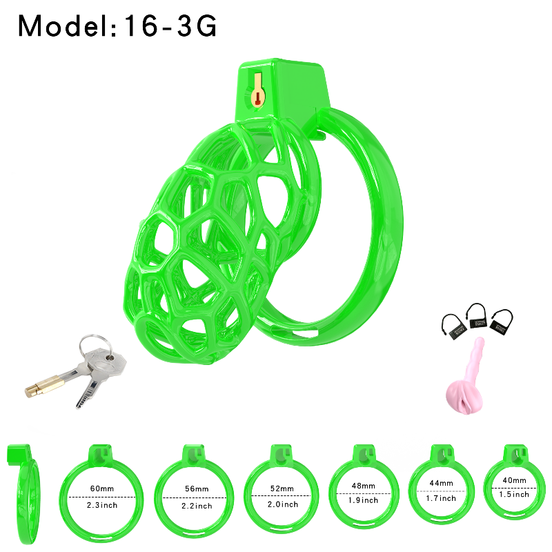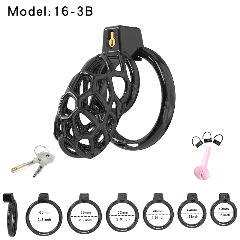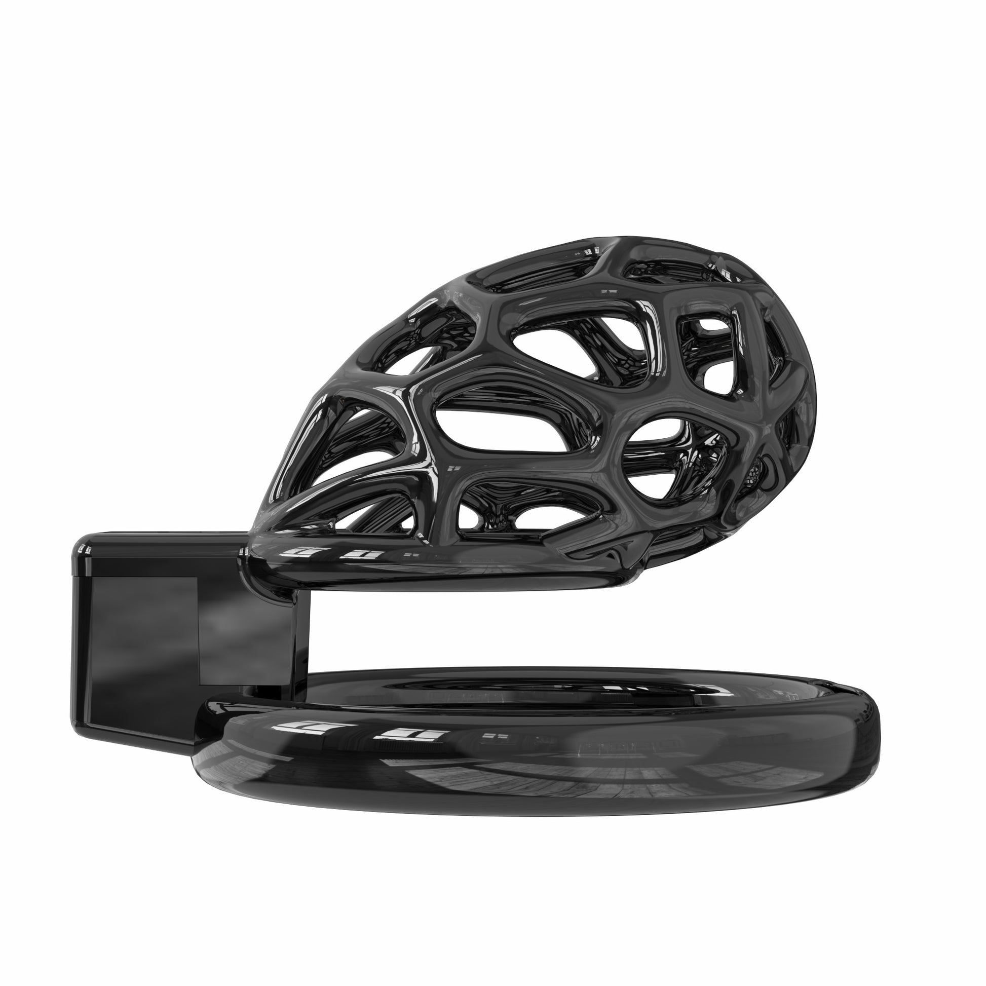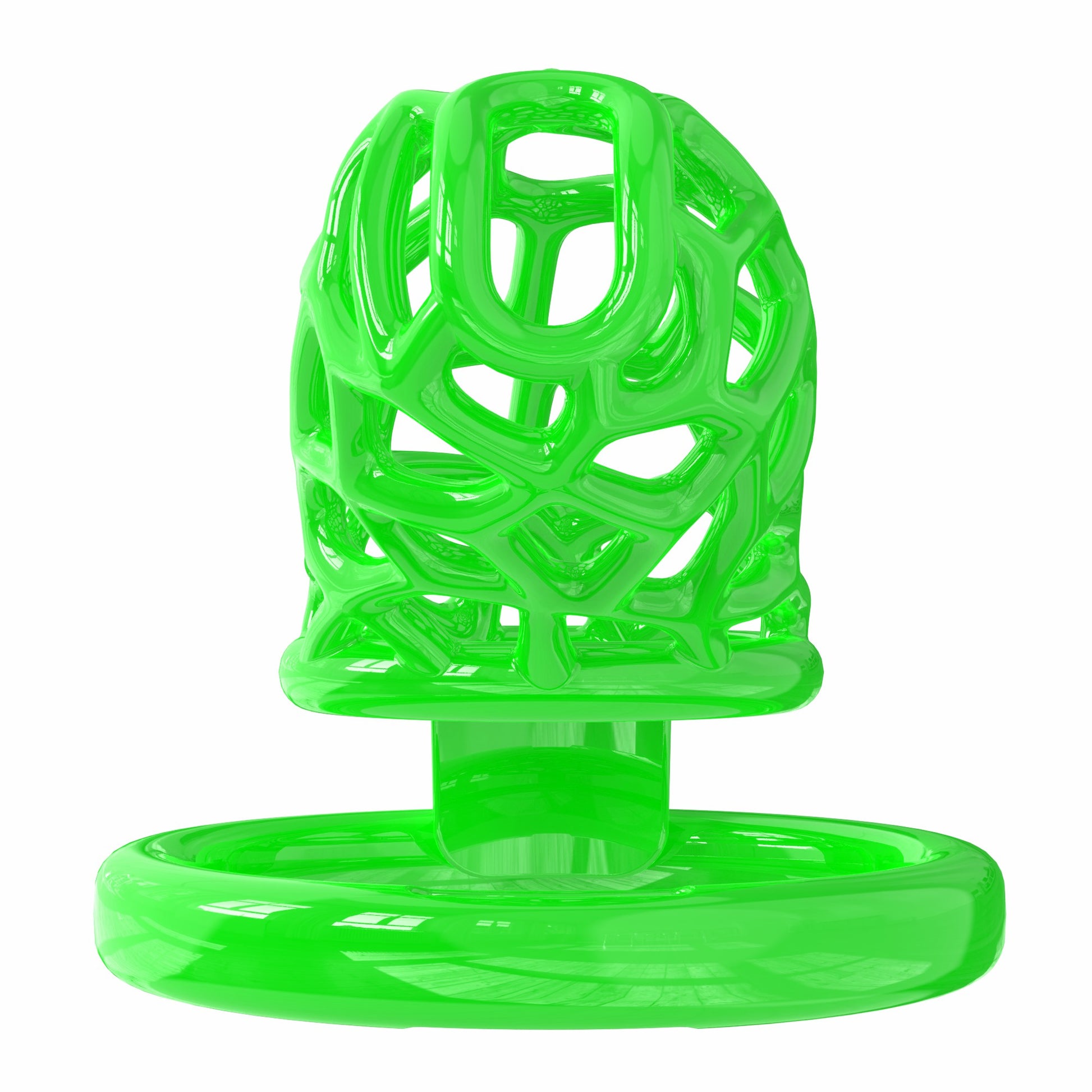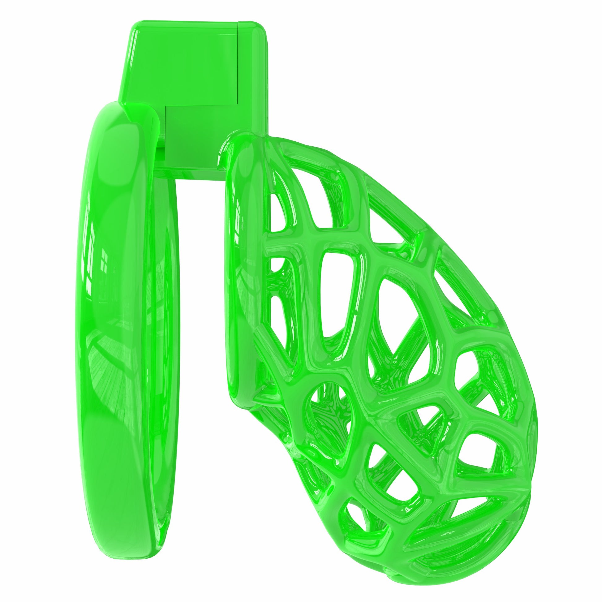 Explore a new level of breathable comfort and visual intrigue with this ultra-light resin chastity cage featuring a unique random mesh design.Discover a new level of breathable comfort and visual appeal with this ultra-light resin chastity cage, featuring a distinctive random mesh design.