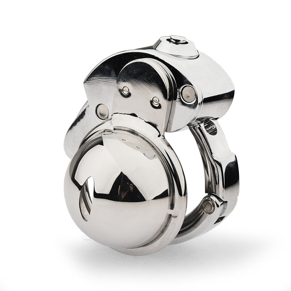 Made of premium alloy metal with a smooth, body-safe finish, this chastity device offers a sleek, low-profile silhouette. Its invisible button lock eliminates the need for bulky padlocks, while still ensuring a secure, tamper-proof connection between the cage and ring.