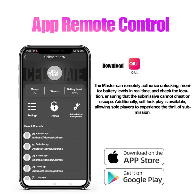 Set a Clock in QIUI App, When it is on time, the cock cage will e-stim him automatically. 1 Mistress controls single or multiple chastity cages