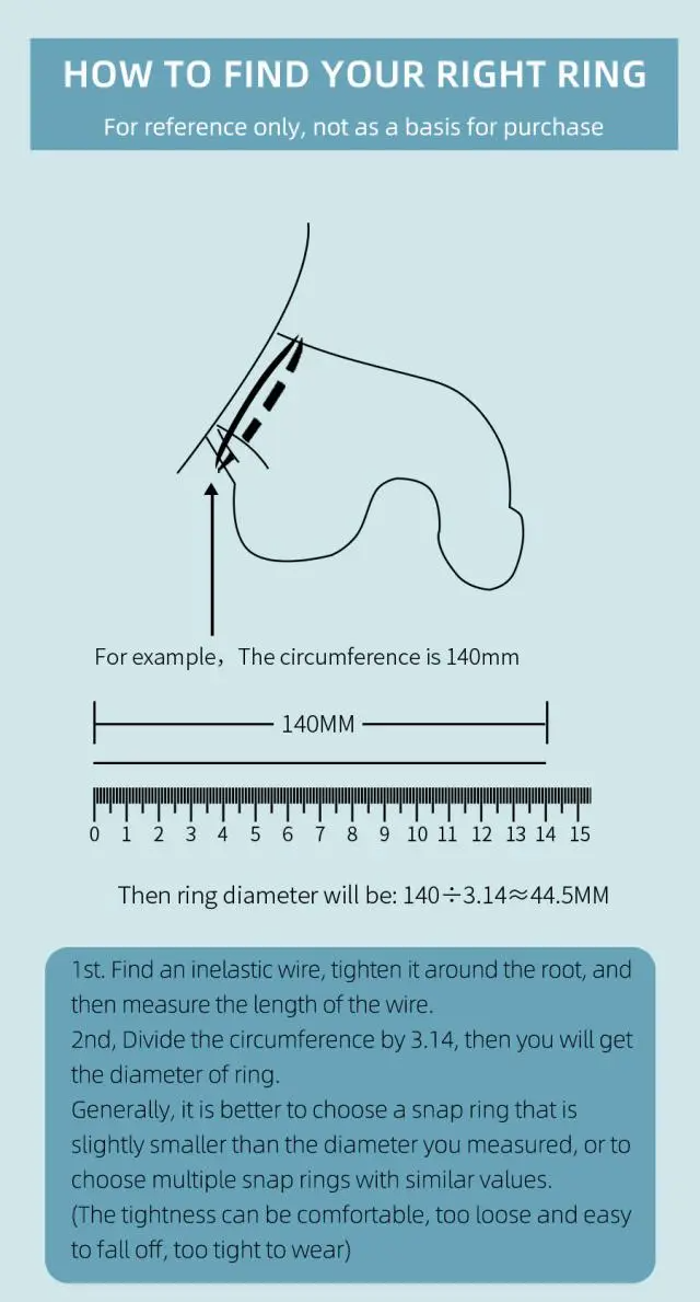 Design for a universal fit. 55mm alloy ring diameter with locking gaps. with an opening for urethral access which aids in extended wear. IP65 waterproof for bath play.