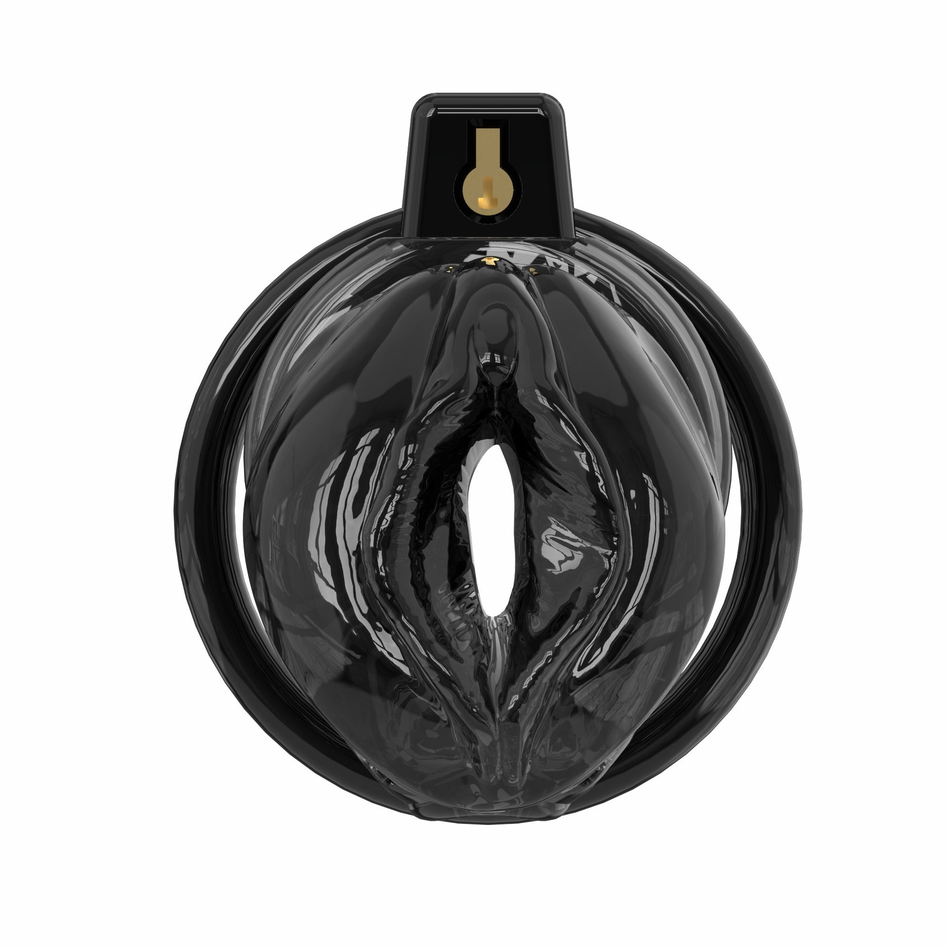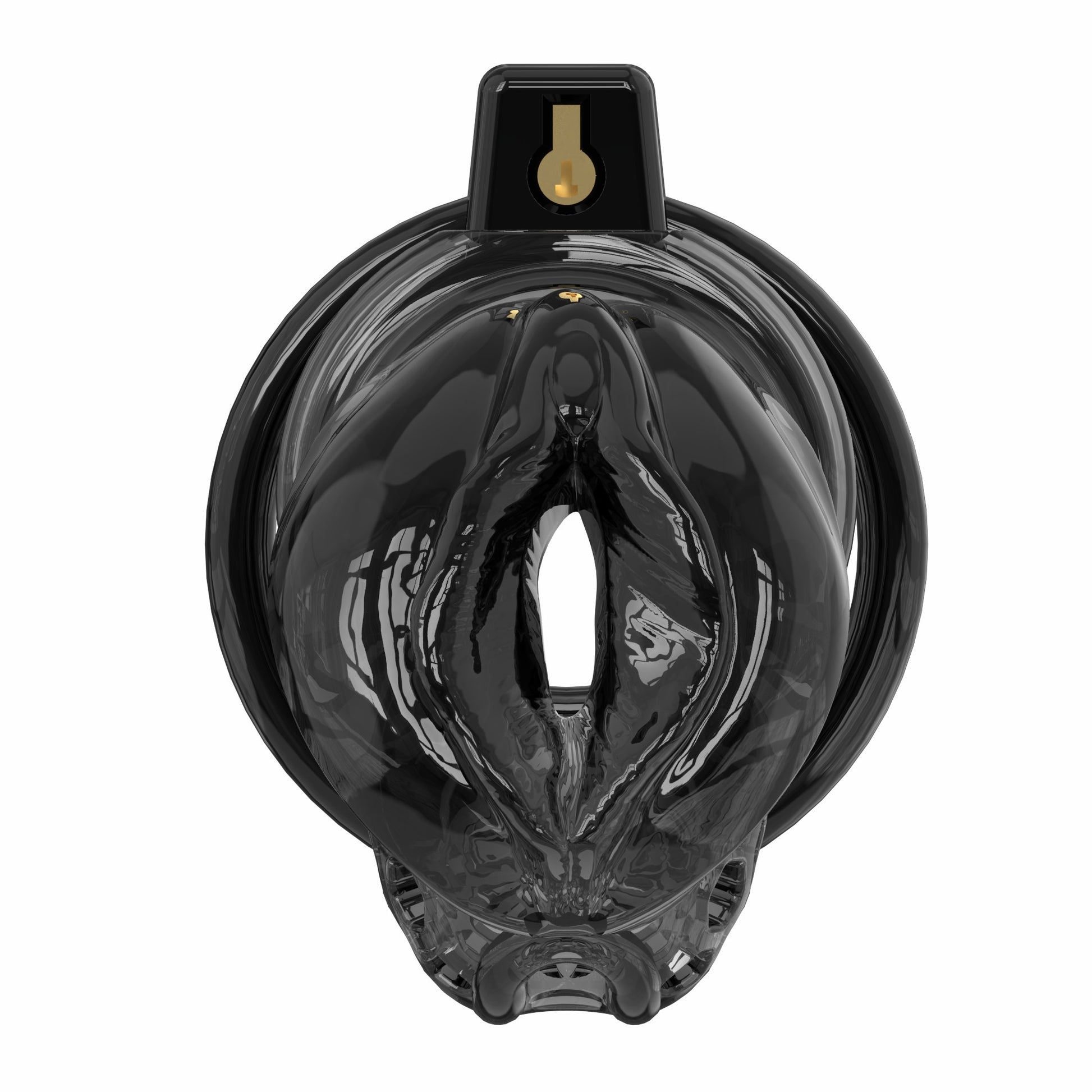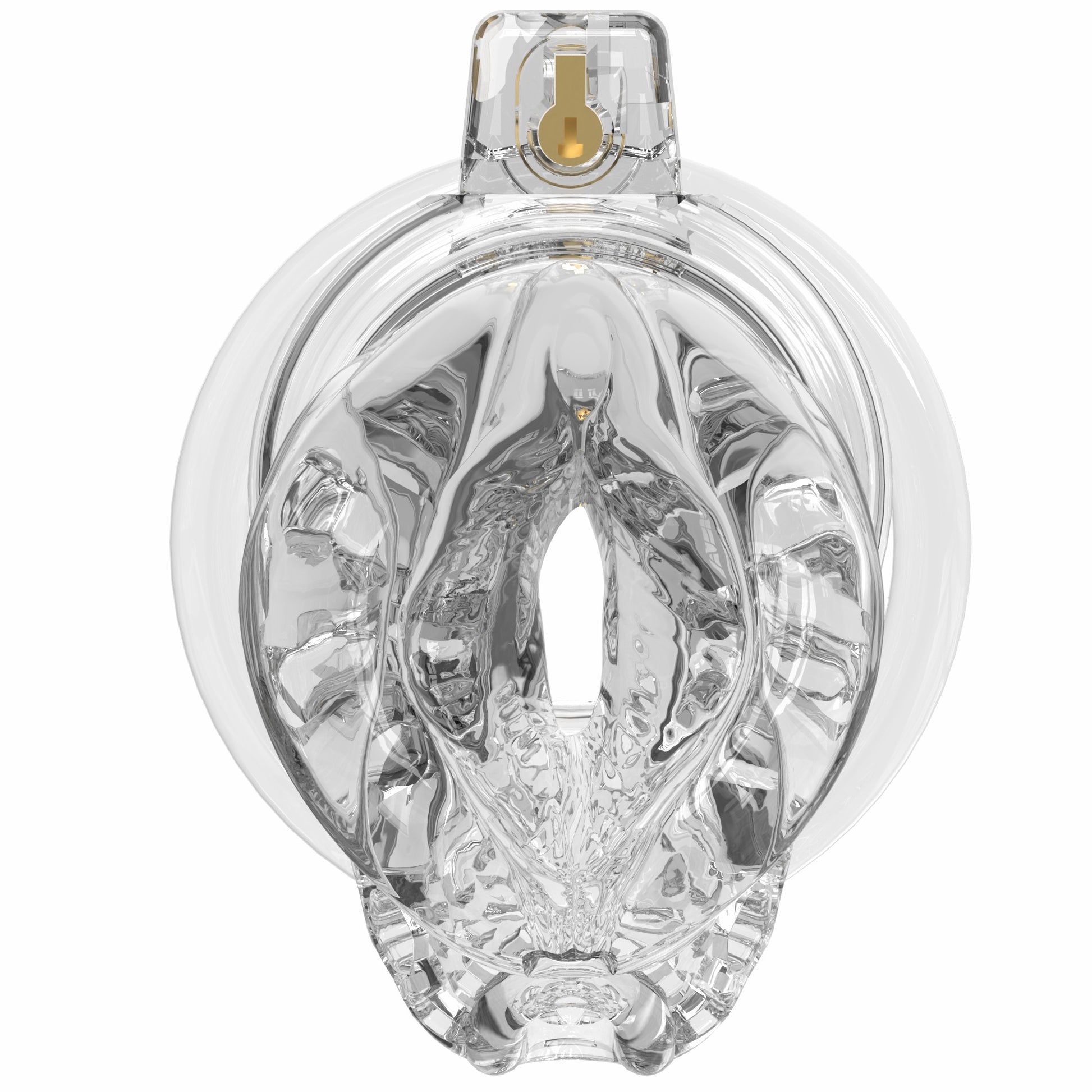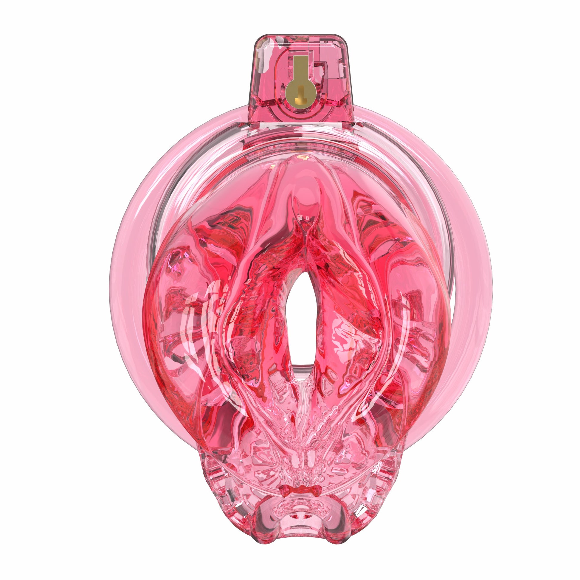Bold and symbolic — this unique cage mimics the curves of a clitoris, adding an element of visual tease and psychological domination. -