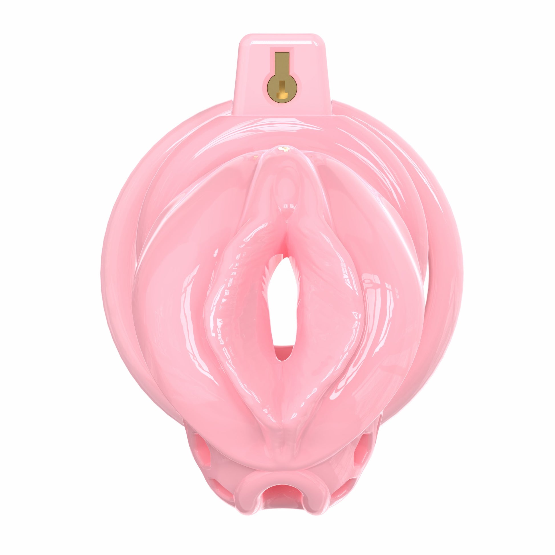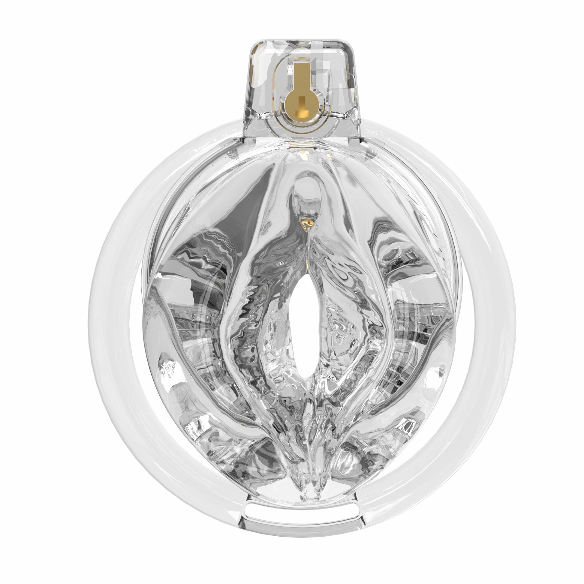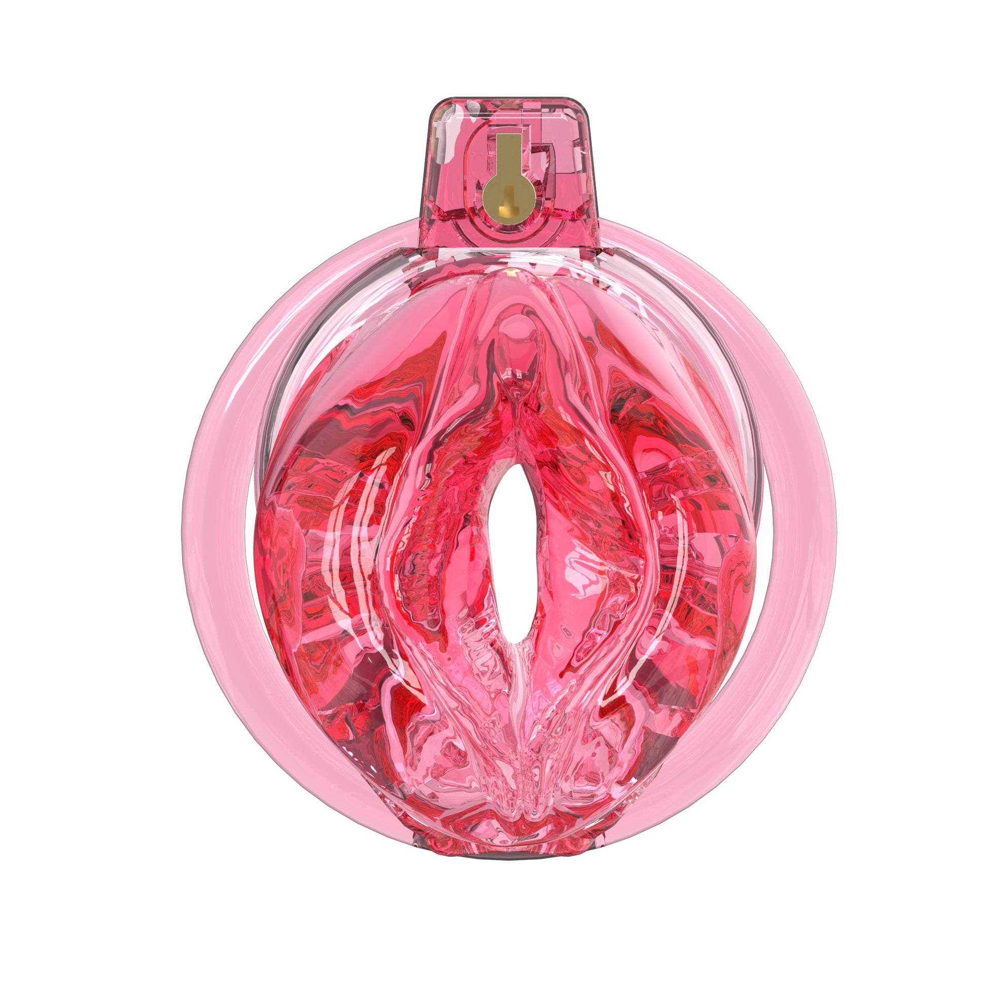 Bold and symbolic — this unique cage mimics the curves of a clitoris, adding an element of visual tease and psychological domination. -