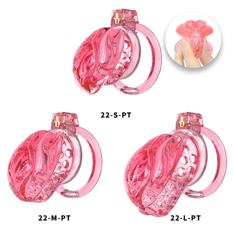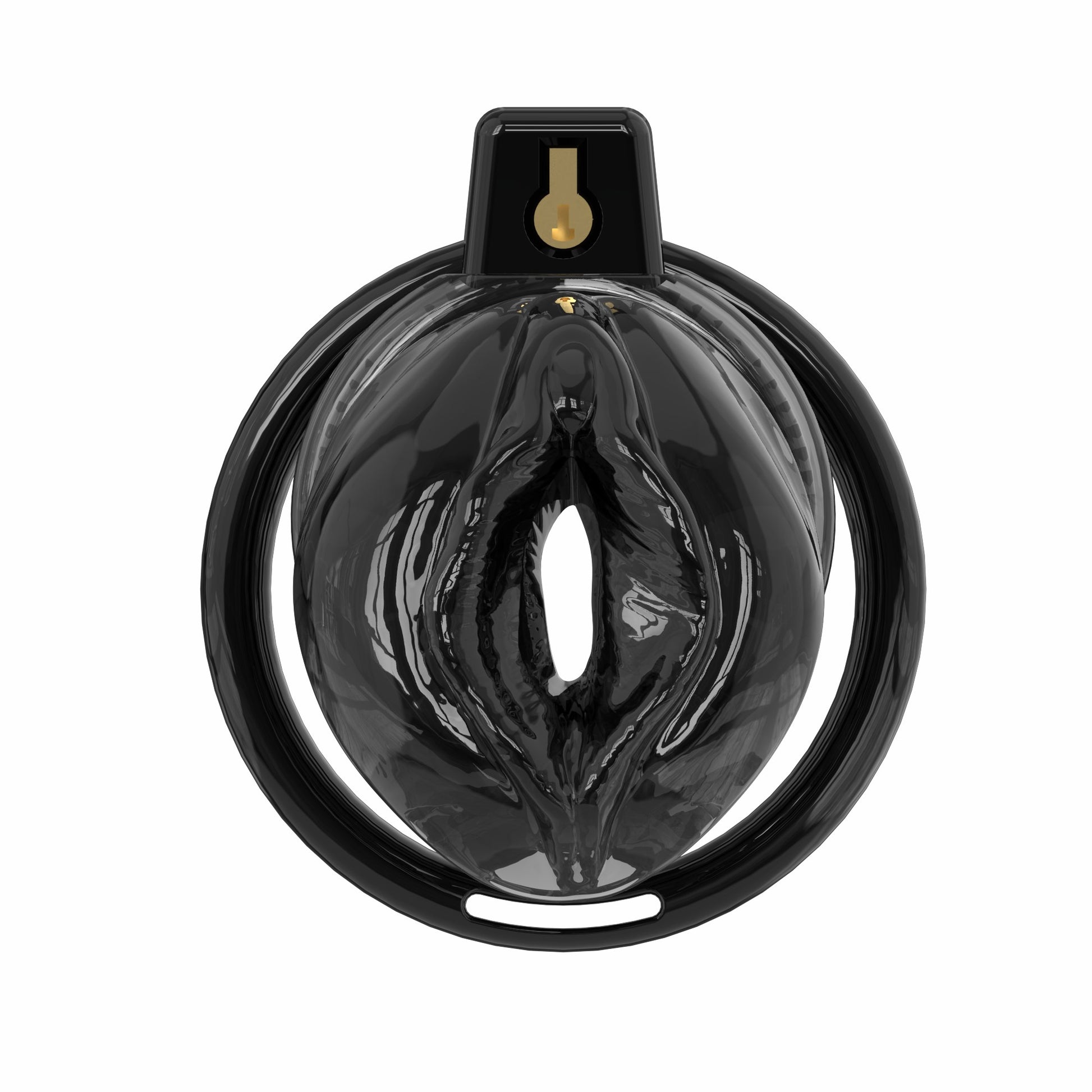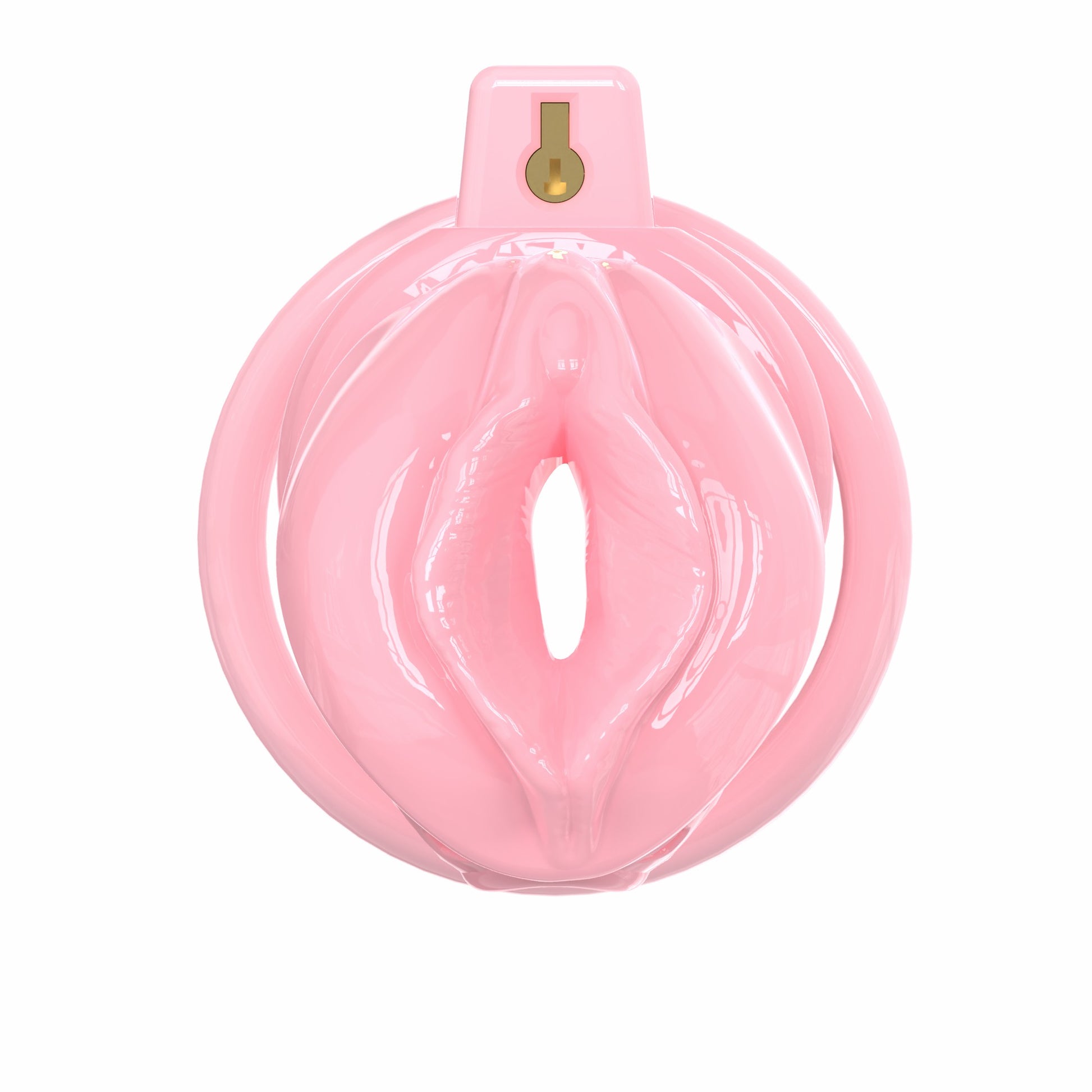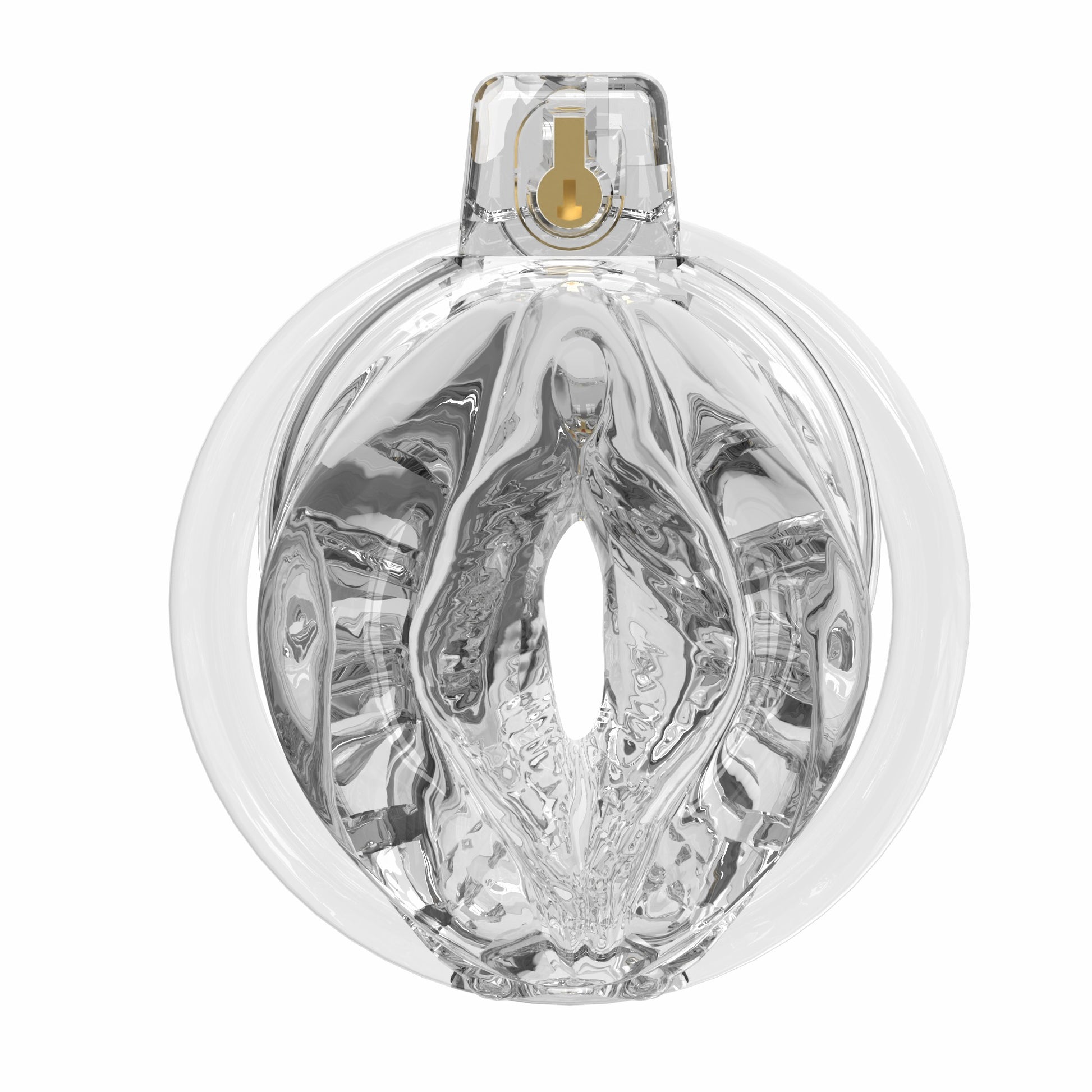 Bold and symbolic — this unique cage mimics the curves of a clitoris, adding an element of visual tease and psychological domination. -
