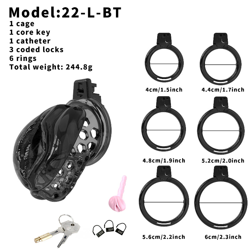 Crafted from ultra-flexible, body-safe silicone in a seductive semi-transparent finish — offering both comfort and a visual glimpse of what’s locked away. -