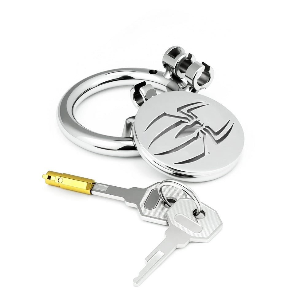 Spider Emblem Metal Chastity Cage – Spiderman-Inspired Flat Design Lock