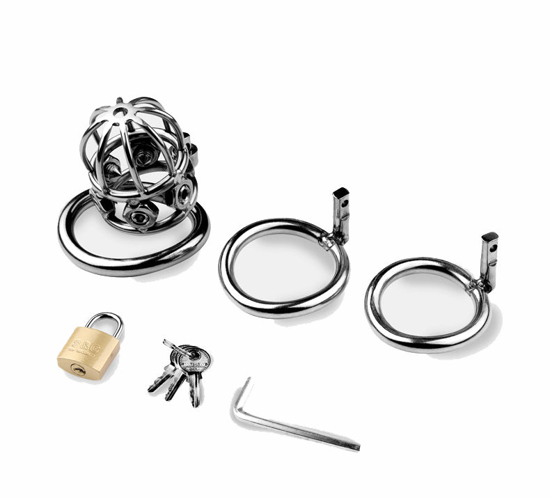 Includes everything you need: 1 cage, 1 curved ring (40/45/50mm), 1 brass lock, 2 keys, and 1 rivet post — ready to play right out of the box.