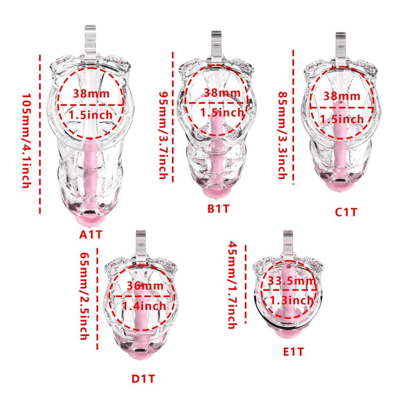 This cage features a wearable base ring design and comes in five adjustable sizes, offering a personalized and secure fit for all body types. The ergonomic shape ensures all-day comfort without compromising containment, making it ideal for beginners and advanced users alike.