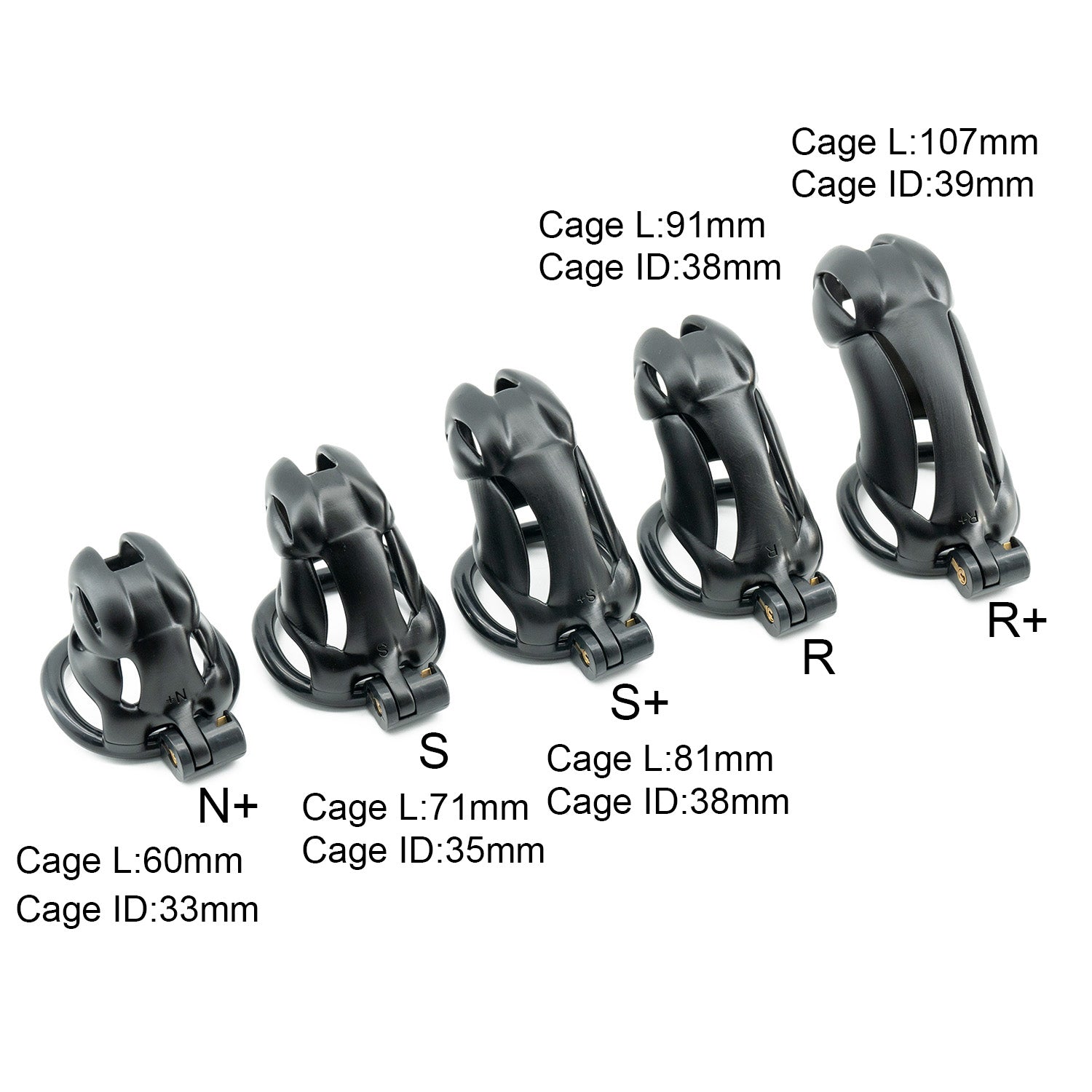 🔒 Multiple Sizes for Perfect Fit — Available in N+, S, S+, R, and R+ with cage lengths from 60mm to 107mm and inner diameters from 33mm to 39mm, ensuring a snug and secure experience for all sizes.